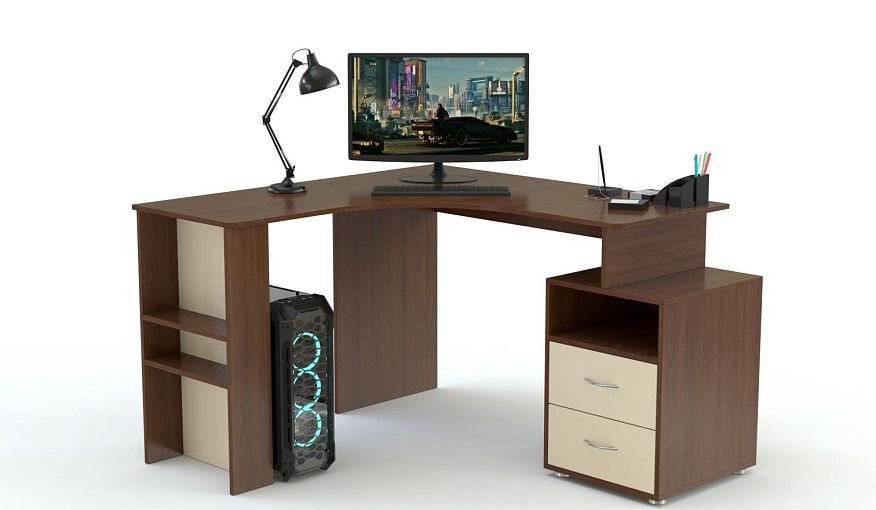 Угловой компьютерный стол Вилли BMS – прекрасный выбор для комнаты современного школьника. Благодаря угловой конструкции модель экономично использует пространство и отличается ярким дизайном, сочетая светлые ванильные и темные древесные оттенки. Стол удобен для письма, работы за компьютером и поможет разместить необходимые под рукой учебные материалы в тумбе с выдвижными ящиками и нишей и на открытых полках, встроенных в боковину. Купить угловой компьютерный стол Вилли BMS приглашаем на сайт нашего интернет-магазина.
