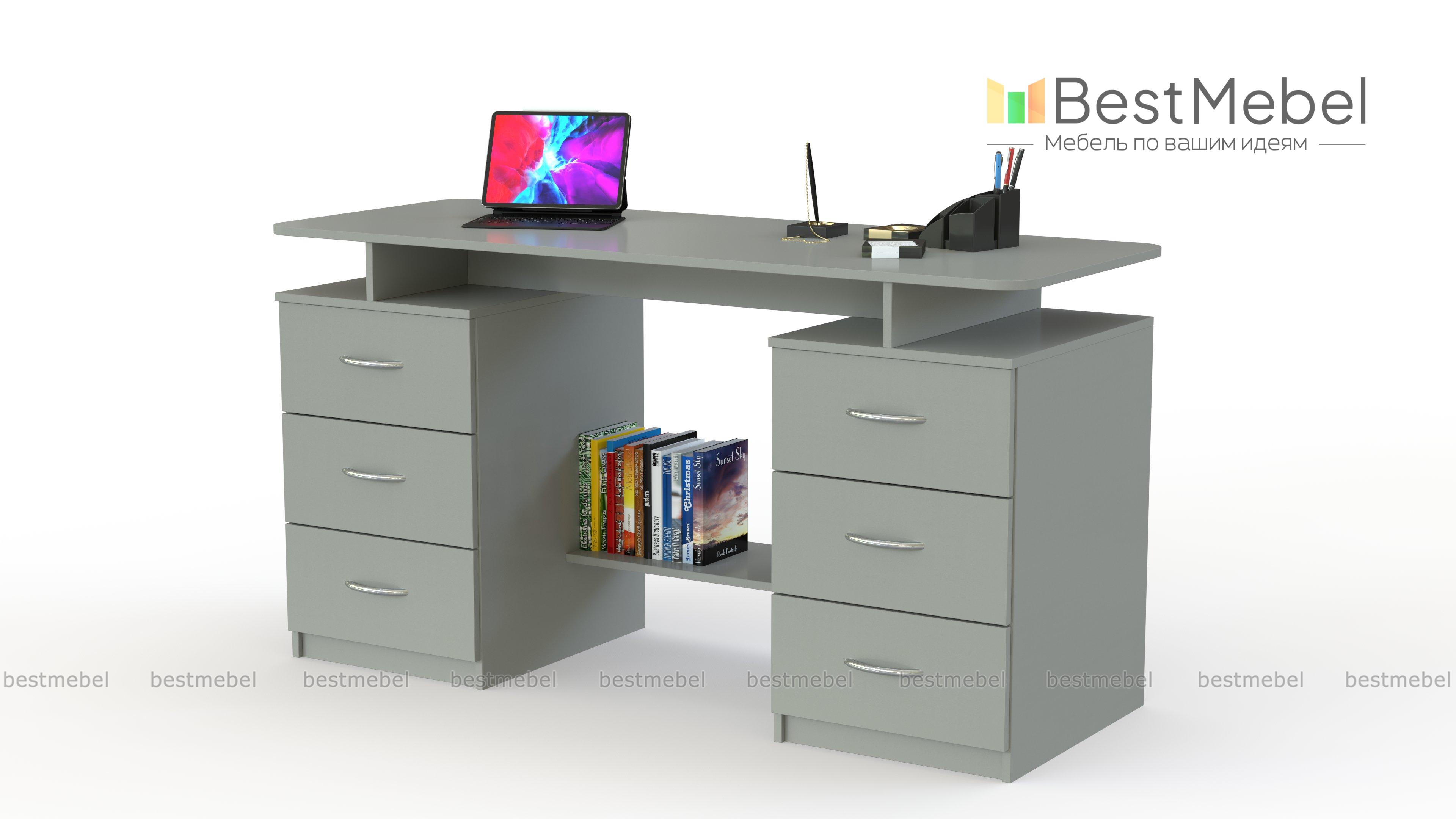 Недавно заказал письменный стол Колизей. Порадовало что можно варьировать размеры (ширину,высоту,глубину, выбирать цвет изделия) Стол имеет 6 выдвижных очень вместительных ящиков. Внизу предусмотрена перекладина (удобно ставить ,например, рюкзак) . Качество изделия хорошее,стол отлично вписался в комнату. Очень доволен приобретением,рекомендую.