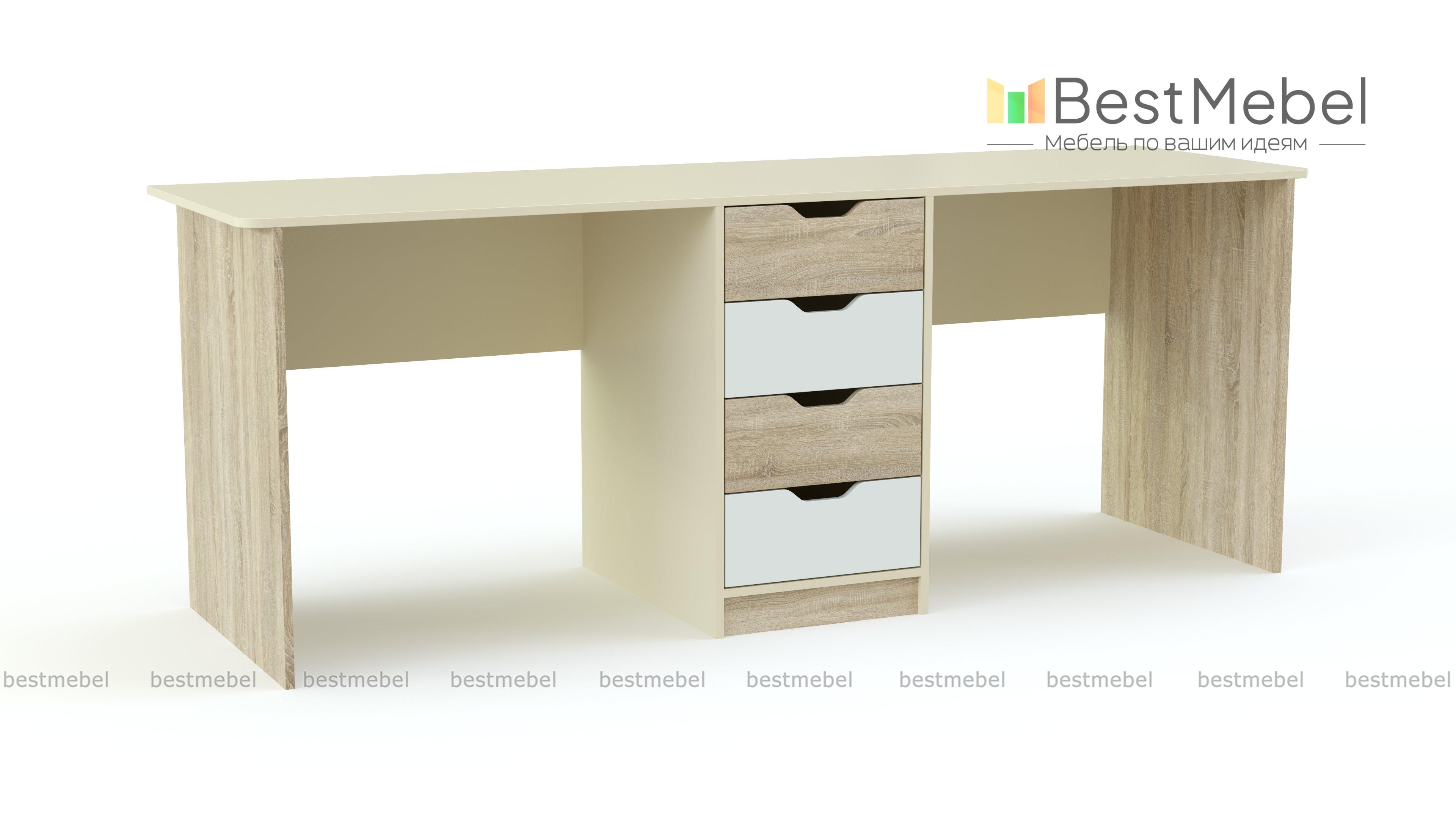 Стол Бали-2 BMS – это яркая современная модель для молодежной комнаты. Стол с удлиненной столешницей и разделительной тумбой в центре сможет разместить сразу двух человек, сэкономив полезную площадь. Гарантией безопасности станут экологичные материалы и скругленные углы, а создать креативный интерьер поможет цветовое решение – нейтральный бежевый и белые вставки. Для хранения мелочей предусмотрены выдвижные ящики. Купить стол Бали-2 BMS приглашаем в наш интернет-магазин по лучшей цене.