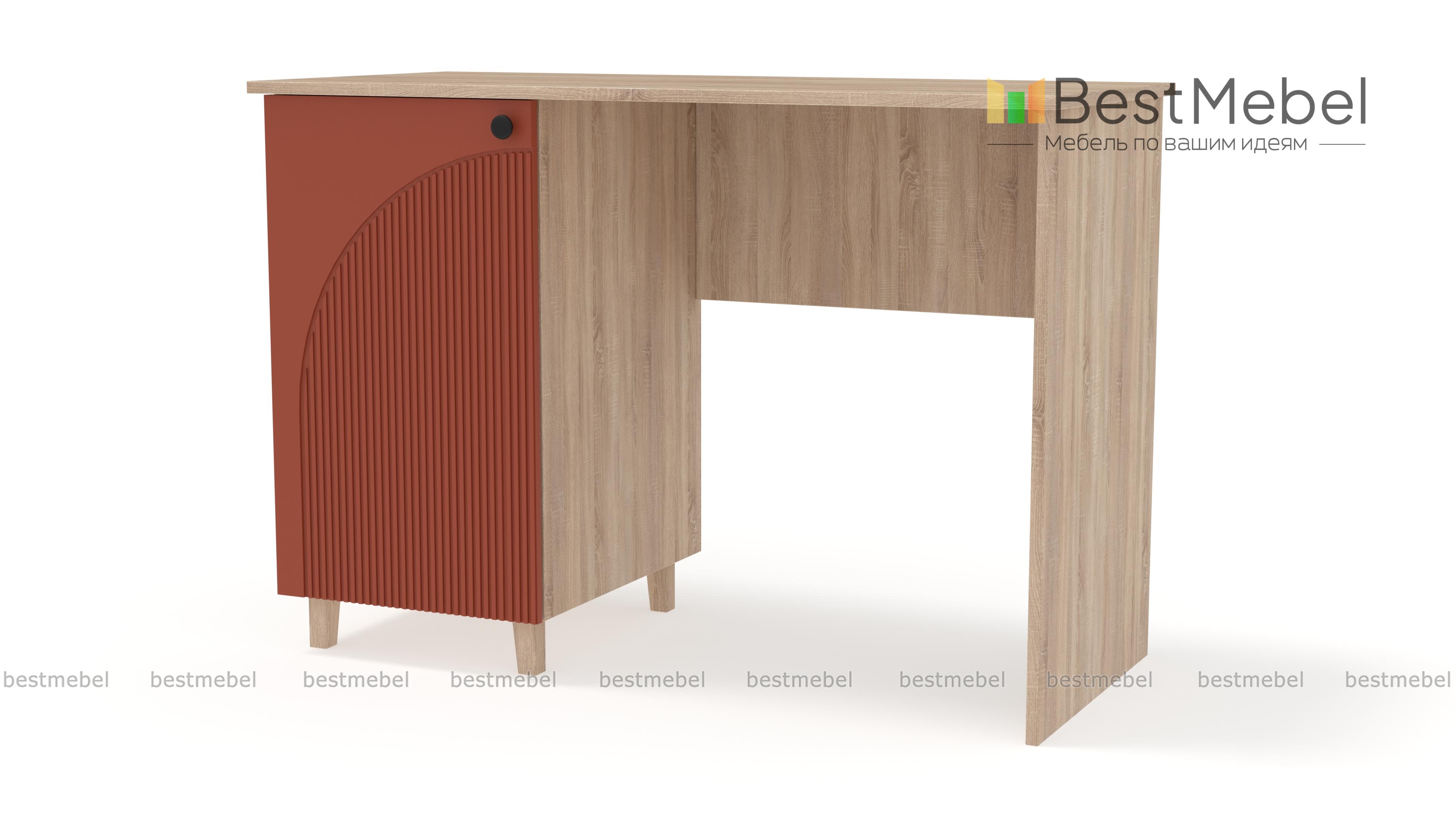 Стол письменный Вивьен 2 BMS — это классическая модель в современном дизайне, удобная для работы и учебы. Стол имеет просторную рабочую поверхность и слева оборудован распашной тумбой с полками для хранения рабочих материалов. Практичный корпус стола изготовлен из ламинированной ДСП, а стильный фасад — МДФ с оригинальным рельефом. Купить стол письменный Вивьен 2 BMS приглашаем в наш интернет-магазин с подбором необходимых размеров, цвета и фурнитуры.