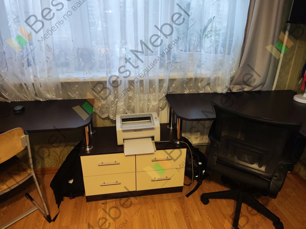 Заказ 00000252127, Угловой письменный стол для двоих Канзас 34 BMSЗаказывали этот стол для детской комнаты. Искали именно угловую модель, чтобы у каждого ребёнка было свое рабочее место. По ширине стол идеально вписался в размеры комнаты.Плюсы:Длина столешницы более 1,7 метра . Это очень удобно. Дети не мешают друг другу, свободно размещают учебники, канцелярию, у каждого теперь своя полка и по два отдельных ящика. Конфликтов из-за места теперь нет + в комнате стало легко поддерживать порядок.Качество сборки и материалы. Стол приехал в надежной упаковке, все детали были целы. Собирали по инструкции, процесс стандартный. Фасад тумб и столешница выглядят аккуратно, заявленного цвета «венге/дуб сонома».Угловая форма позволяет каждому сидеть в удобном положении.Отличное соотношение цены и качества.Недостаток: качество кромки на столешнице. Этот недостаток легко устраняется покупкой кромки на маркетплейсе за копейки. Запах ДСП держится какое-то время, но со временем проходит.Итог: Стол «Канзас-34» — нам идеально подошёл. Комфортно, уютно, удобно и со вкусом. Рекомендую.