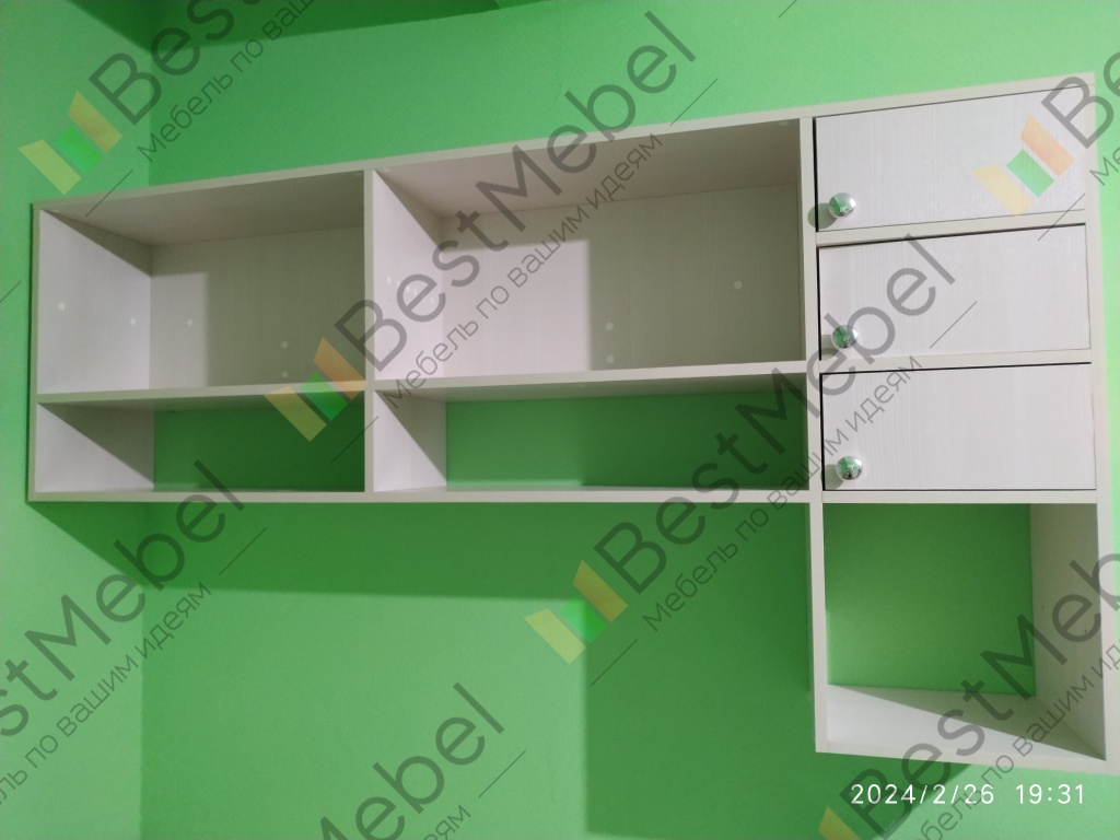 Угловой письменный стол для двоих с надстройкой Пилот 60 BMS. Качество хорошее, собирали самостоятельно. Работа с клиентами отличная. Единственный минус, для нас достаточно значимый, нет акцента, на то, что в модели по стандарту полочки в пристройке по факту очень маленькие, на картинке видишь полки на которые книги сложены вертикально и не рассматриваешь что в характеристике высота полочки всего 155,8 мм. Книги можно только горизонтально сложить. На фото мы убрали полку сверху.