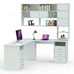 Угловой письменный стол для двоих Пилот 60 BMS станет отличным выбором для небольших помещений, помогая сэкономить пространство. Композиция включает в себя угловой стол с широкими столешницами, двумя тумбами, оборудованными нишами и выдвижными ящиками, а также навесные книжные полки – открытые, глухие и застекленные. Визуальную легкость лаконичной модели придает исполнение в белом цвете. Купить угловой письменный стол для двоих Пилот 60 BMS вы сможете в нашем интернет-магазине по доступной цене.