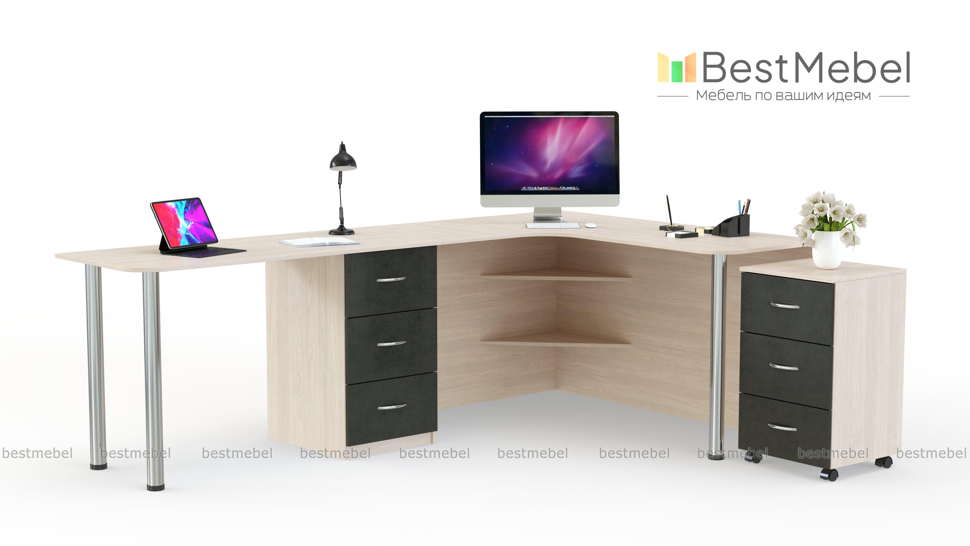 Угловой письменный стол для двоих Виктория 17 BMS сочетает в себе практичную конструкцию, современный дизайн и доступную цену. Модель позволит выгодно использовать угловое пространство и сэкономить полезную площадь комнаты. Устойчивый благодаря регулируемым опорам стол имеет просторную рабочую поверхность, дополнен стационарной и мобильной тумбами, а также открытыми нижними полками. Купить угловой письменный стол для двоих Виктория 17 BMS вы сможете в нашем интернет-магазине.