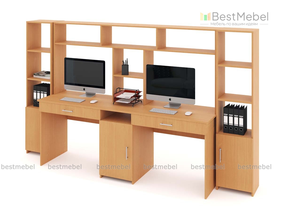 Уголок школьника Лайк-10Я с надстройкой BMS отличается практичной прямой конструкцией, средними габаритами и универсальным дизайном. Уголок выполнен в теплых древесных тонах и включает все необходимое для комфортной учебы двух детей. Композиция объединяет два письменных стола с выдвижными ящиками и распашной тумбой, надстройку с открытыми секциями и нишами под монитор и два пенала с полками и глухими отделениями. Купить уголок школьника Лайк-10Я с надстройкой BMS вы сможете в нашем интернет-магазине по доступной цене.