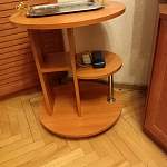 Столик сделан по индивидуальным размерам, собирается быстро, подобран в цвет основной мебели. Удобный и много места не занимает, правда мы долго ждали доставку и на нижней столешнице с обратной стороны имеются сколы, но мы все равно довольны.