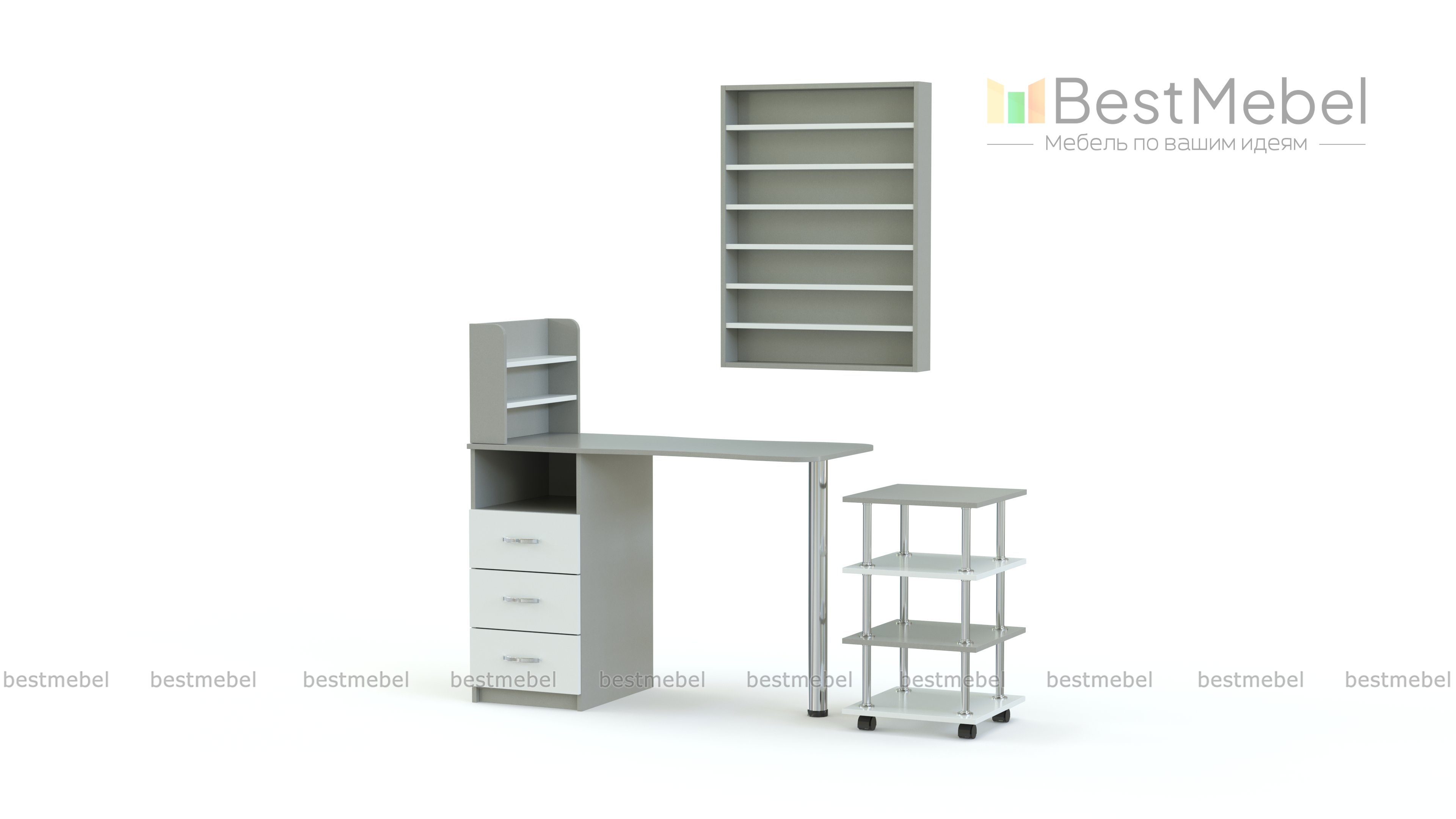 Маникюрный стол Адилета BMS, выполненный в контрастной серо-белой гамме, станет ярким акцентом в интерьере современного салона. Практичная композиция включает в себя складной маникюрный столик с тумбой и подставкой под лаки, этажерку на хромированных опорах и навесную полку. Благодаря продуманному сочетанию элементов вы сможете оборудовать комфортное рабочее место, сэкономив пространство. Купить маникюрный стол Адилета BMS по выгодной цене приглашаем к нам в интернет-магазин.