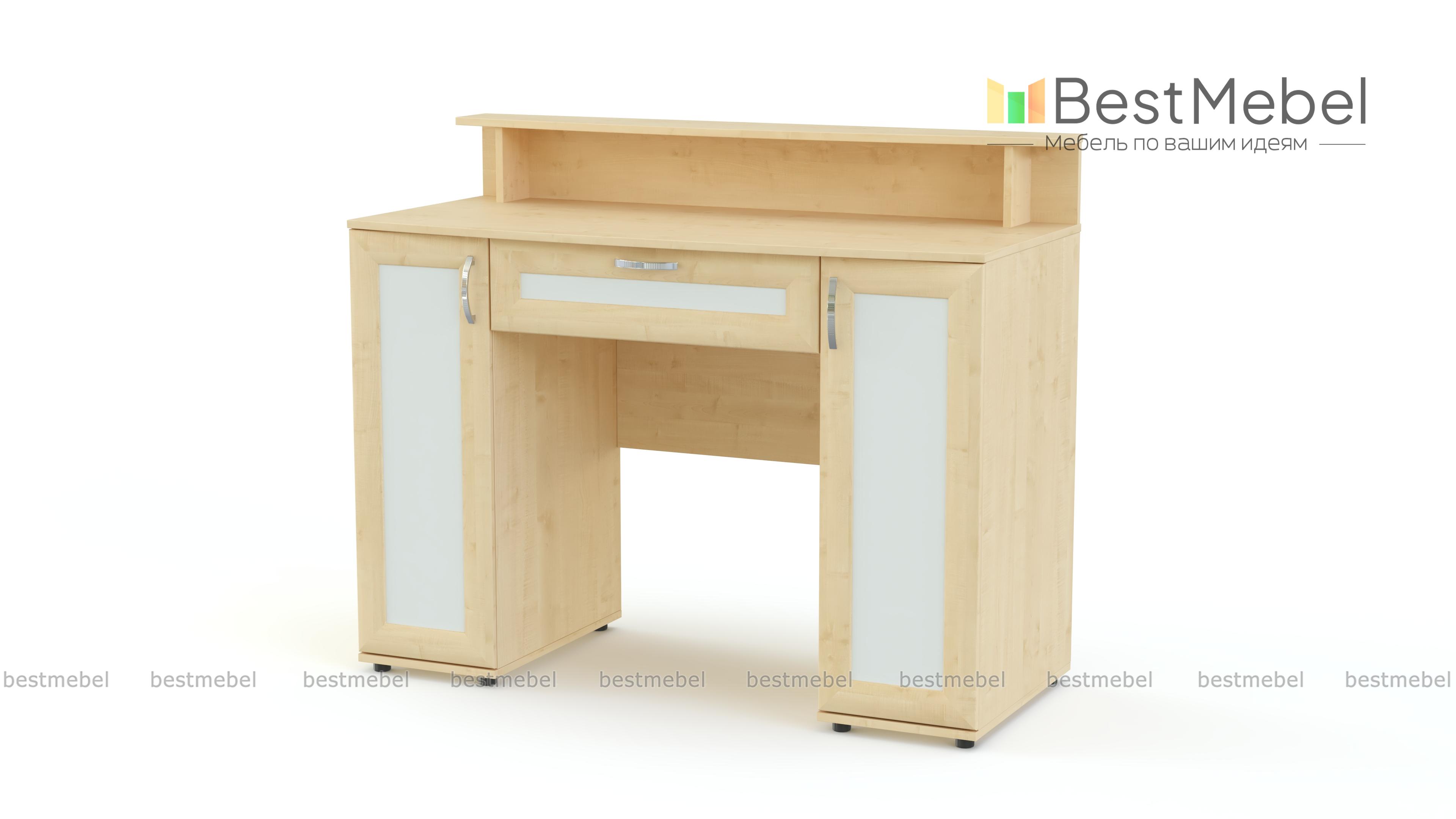 Туалетный стол Магнус 5 BMS гармонично дополнит интерьер современной спальни и поможет разместить под рукой все необходимые уходовые средства. Модель оборудована двумя распашными тумбами, выдвижным ящиком для мелочей, а столешницу эргономичной формы дополняет надстройка с полочкой, к которой крепится зеркало, и нишей. Выполненные в древесных тонах рамочные фасады декорированы вставками контрастного цвета. Купить туалетный стол Магнус 5 BMS приглашаем в наш интернет-магазин по доступной цене.