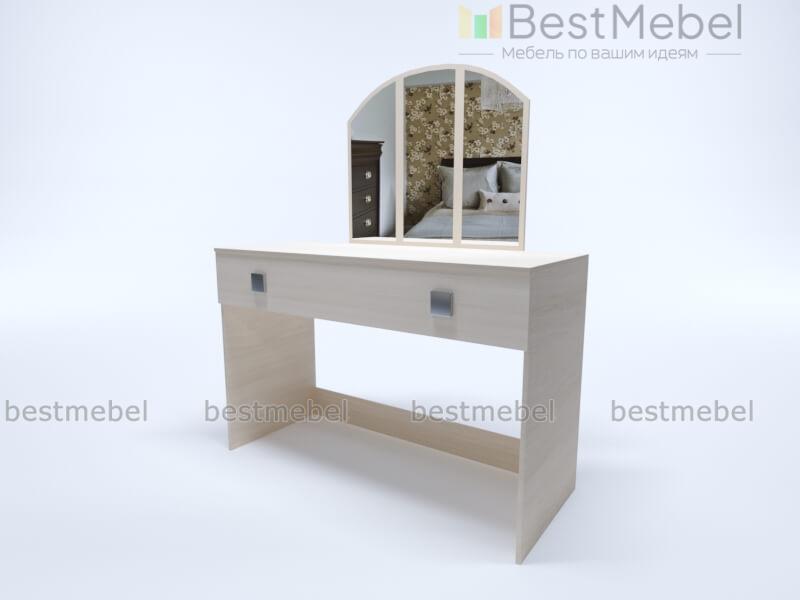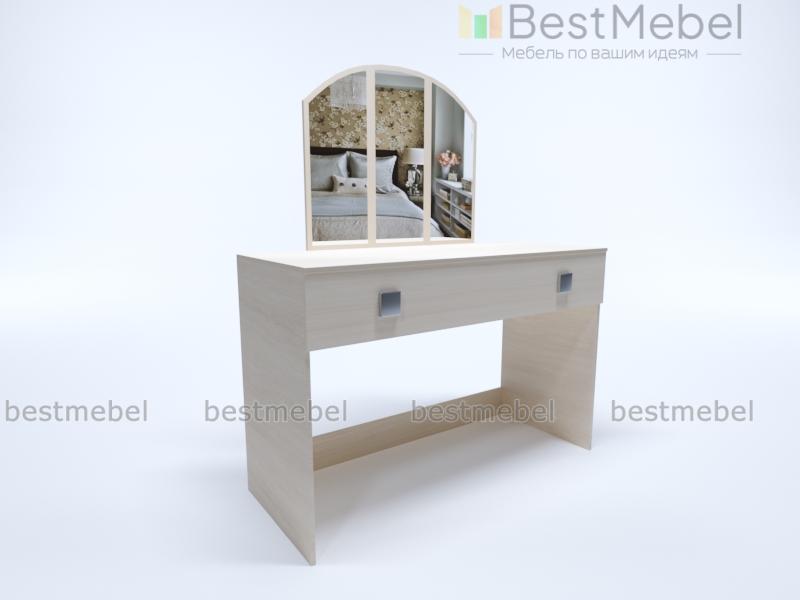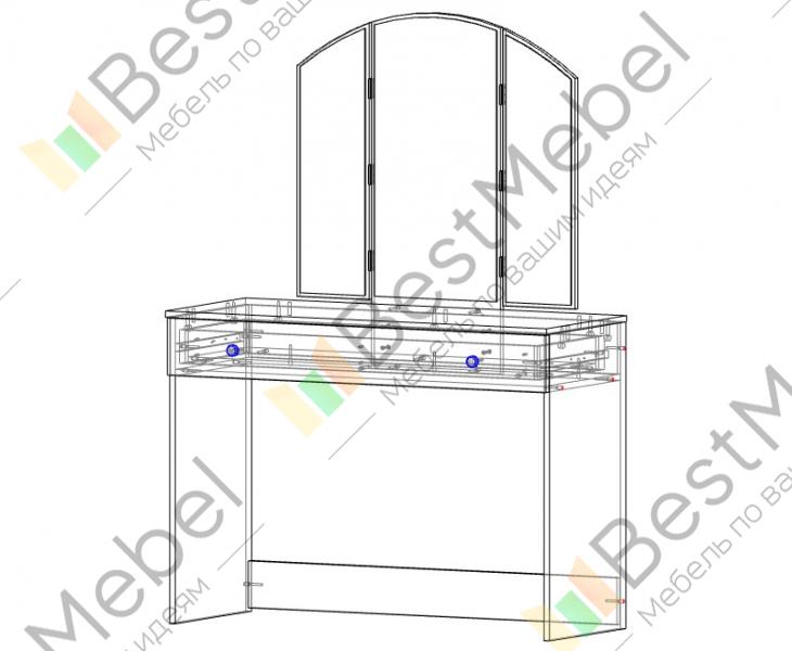Элегантный столик для классического и современного интерьеров. На простом прямоугольном основании располагается изящное традиционное зеркало – трельяж с полукруглым верхом, идеальное для создания причесок. Под столешницей имеется длинный выдвижной ящик, с двумя просторными отделениями внутри и оригинальными ручками. Корпус туалетного столика Angel BMS матовый, фасад ящика декорирован глянцем, цвет которого можно выбрать – от нежных пастельных до ярких оттенков.