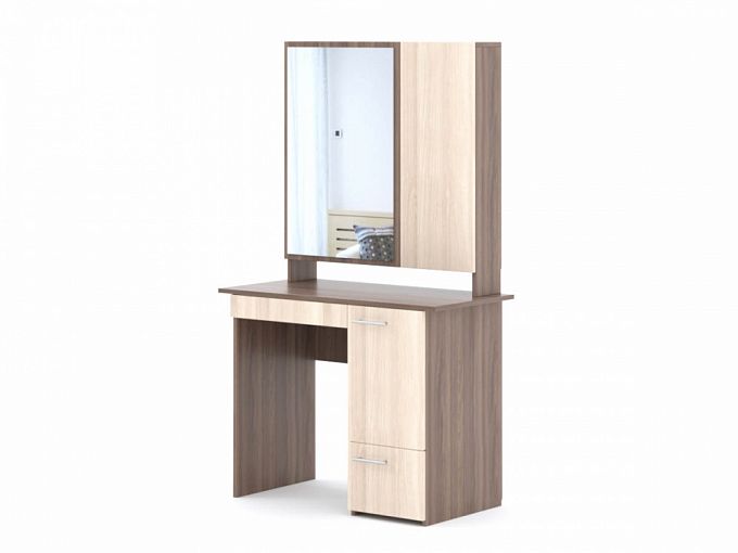 Туалетный столик Бриз BMS – элегантный и очень удобный. Расположен на невысоких ножках, имеет оригинальную фурнитуру и стильный дизайнерский рисунок на фасаде. Большое зеркало – мечта каждой женщины, за ним спрятано три полочки для косметики. Кроме этого имеется выдвижной ящичек для мелких предметов и боковая тумбочка с двумя автономными отделениями. Такое изделие создаст уютный женский уголок в Вашей спальне. Купить туалетный столик Бриз BMS Вы можете в нашем интернет-магазине, подобрав свои цвета и свои размеры.