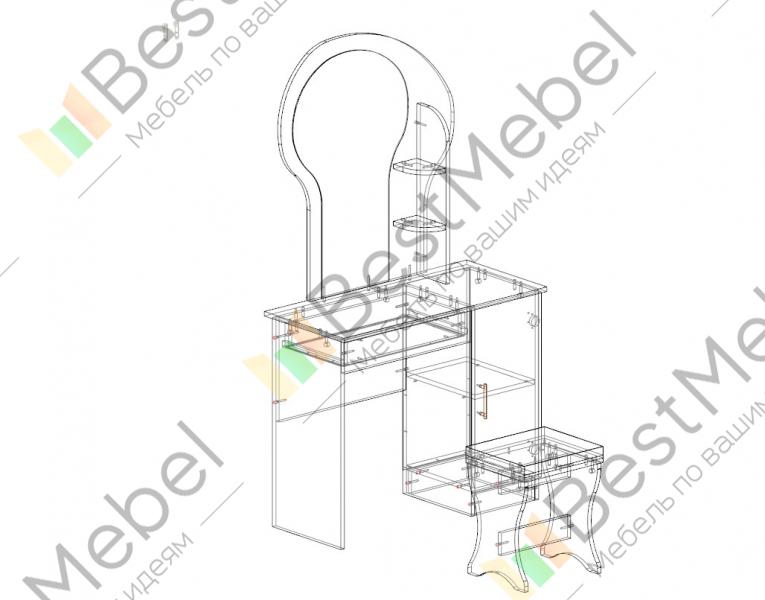 Туалетный столик Светлана 34 BMS гармонично дополнит другие предметы спального гарнитура. Для удобного хранения средств по уходу и аксессуаров стол оборудован распашной тумбой и открытыми боковыми полочками, а необычный вид модели придает обтекаемой формы зеркало на фигурной панели. С комфортом расположиться за столиком позволит выполненная в едином стиле банкетка с мягким сиденьем. Купить туалетный столик Светлана 34 BMS приглашаем недорого в наш интернет-магазин.