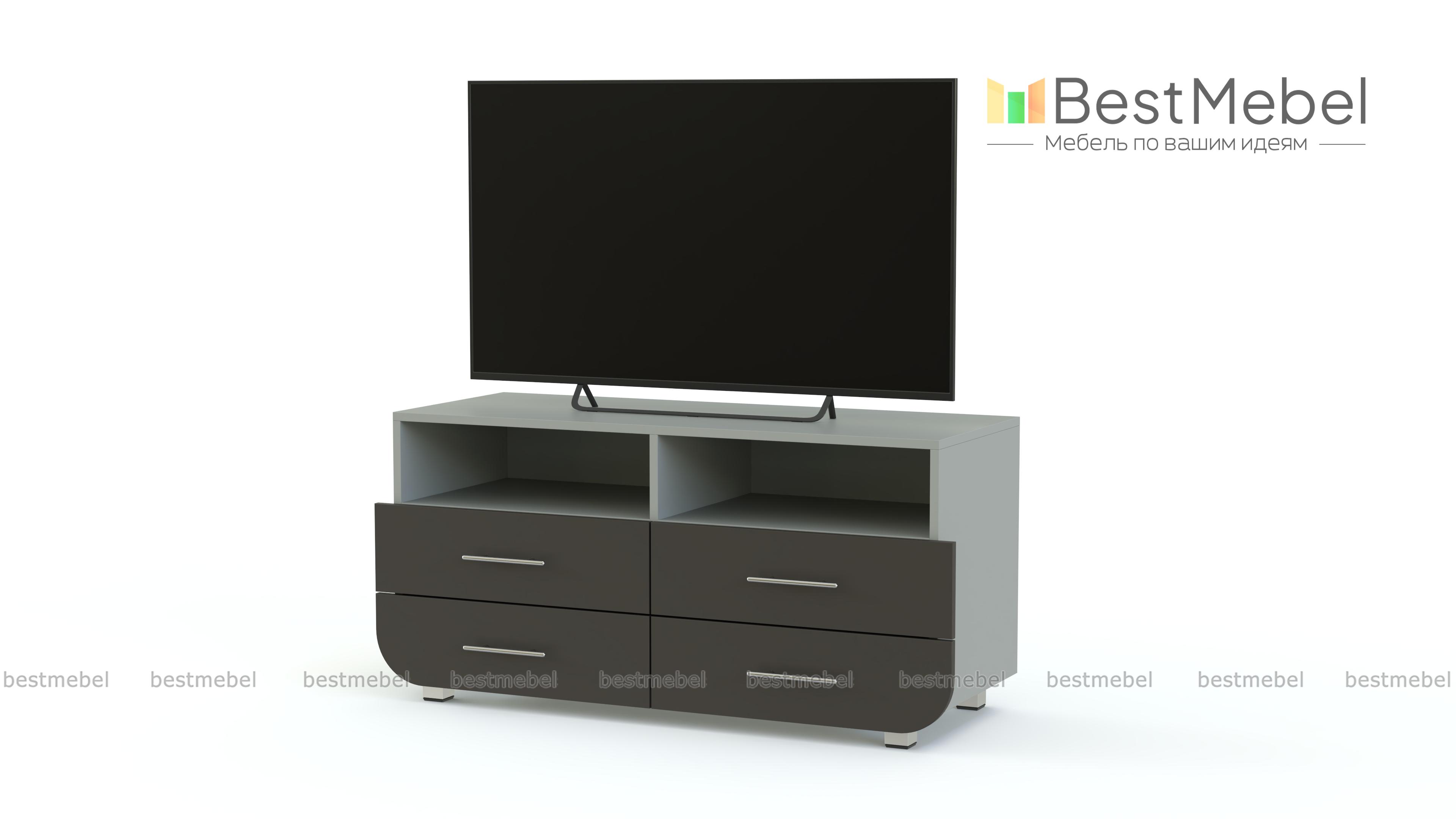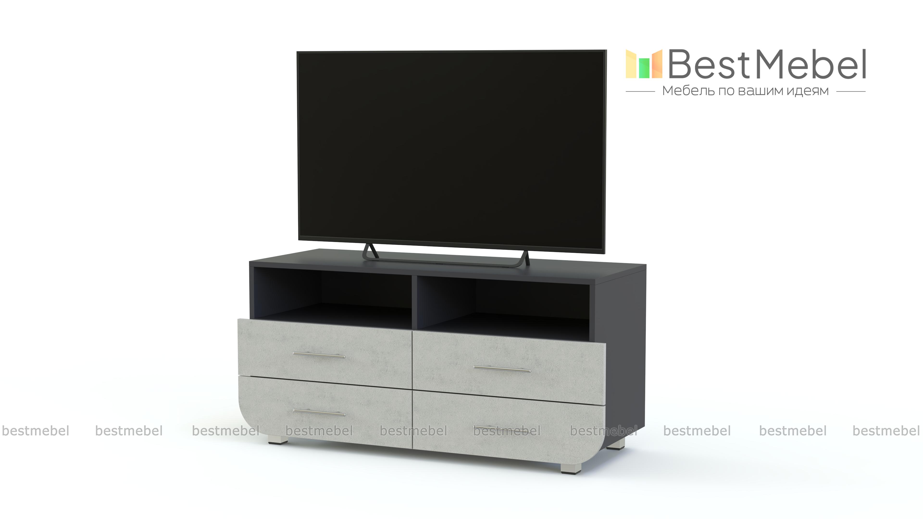 Тумба под ТВ Модерно 15.1 BMS – это компактные размеры, вместительность и современный дизайн. Обтекаемые формы сплошных матовых фасадов модели идеально впишутся в интерьеры стиля минимализм или хай-тэк. Для удобного размещения техники, книг, предметов декора и мелочей тумба оборудована просторной столешницей, двумя нишами и четырьмя выдвижными ящиками. Купить Тумбу под ТВ Модерно 15.1 BMS, подобрав оптимальное цветовое сочетание, вы сможете в нашем интернет-магазине.