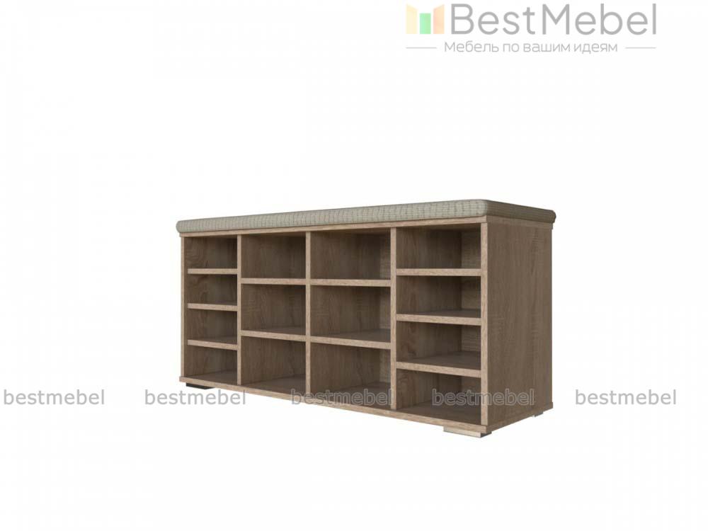 Тумба для обуви Шелф BMS гармонично впишется в современные интерьеры и поможет оптимизировать хранение обуви, уходовых средств и аксессуаров. Широкая низкая модель оборудована нишами разных размеров и просторной столешницей, которую элемент в мягкой обивке превращает в комфортную скамью. Открытая конструкция позволит быстро найти нужную пару и обеспечивает содержимому проветривание. Купить тумбу для обуви Шелф BMS по отличной цене приглашаем в наш интернет-магазин.