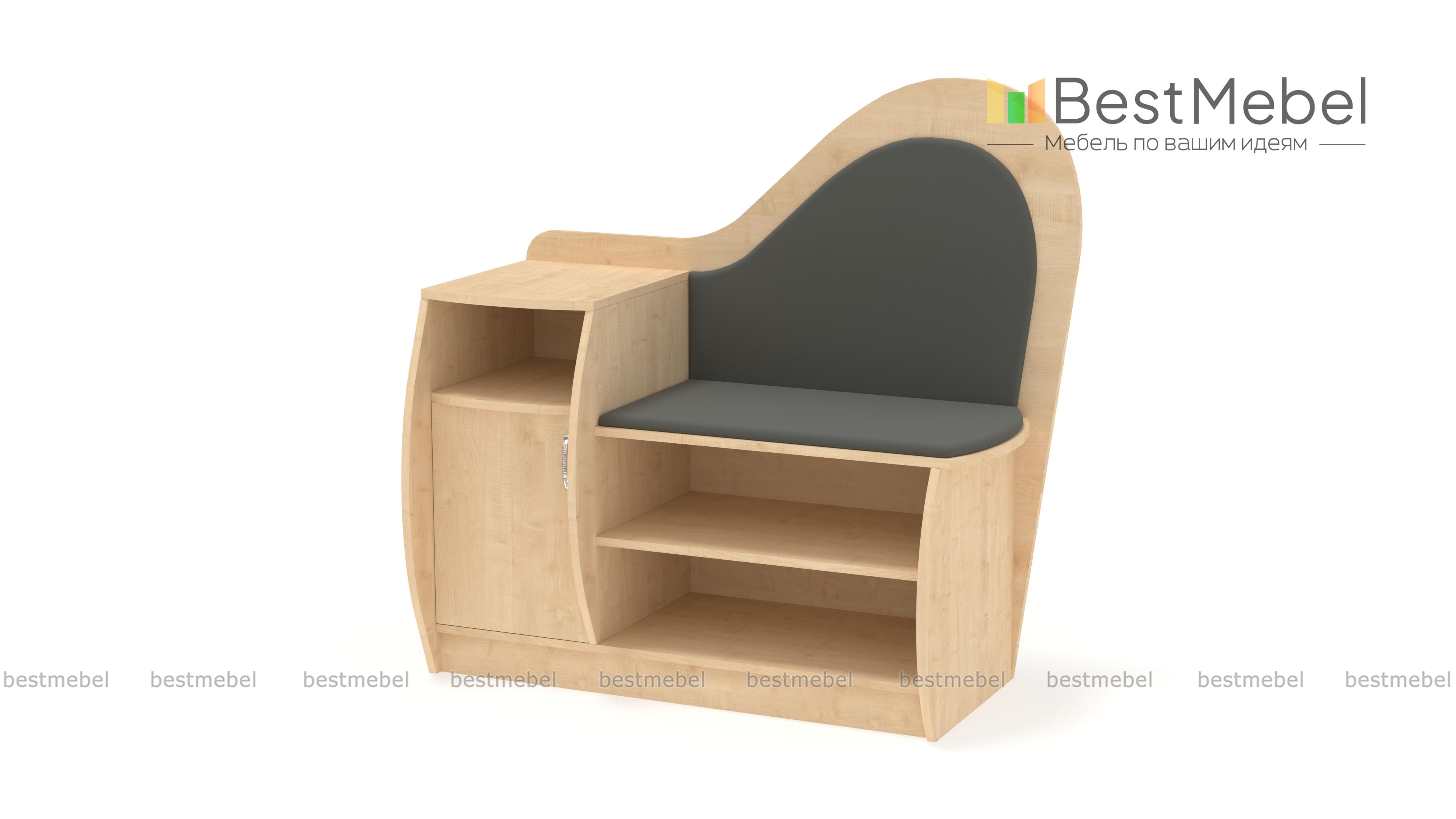 Тумба для обуви ВА-012.7 BMS – оригинальная классическая модель, которая сделает входную зону уютной и эстетичной. Комбинированная тумба оборудована двумя просторными нишами для обуви, распашным отделением, удобным для хранения мелочей, открытой полкой и комфортным сиденьем с мягкой обивкой. Украшением интерьера станут фигурно вырезанные, скругленные элементы и теплая бежевая гамма корпуса и контрастный цвет обивки. Купить тумбу для обуви ВА-012.7 BMS приглашаем недорого в наш интернет-магазин.