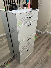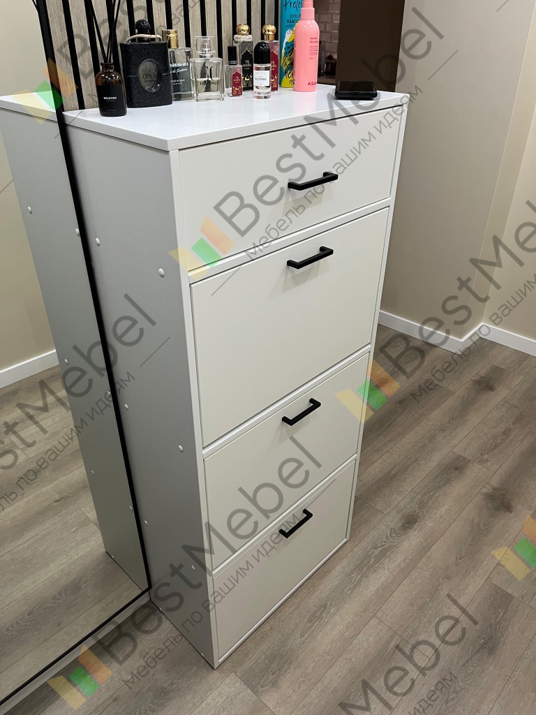 Тумба для обуви Вайт 8 BMS станет элегантным дополнением современной прихожей и обеспечит экономию пространства. Компактная и вместительная благодаря высоте модель оборудована тремя откидными отделениями под обувь и выдвижным ящичком для уходовых средств и прочих мелочей в верхней части. Практичный корпус в светлых тонах дополнен эффектным фасадом в сером глянце, который визуально делает помещение просторнее и светлее. Купить тумбу для обуви Вайт 8 BMS вы сможете в нашем интернет-магазине.