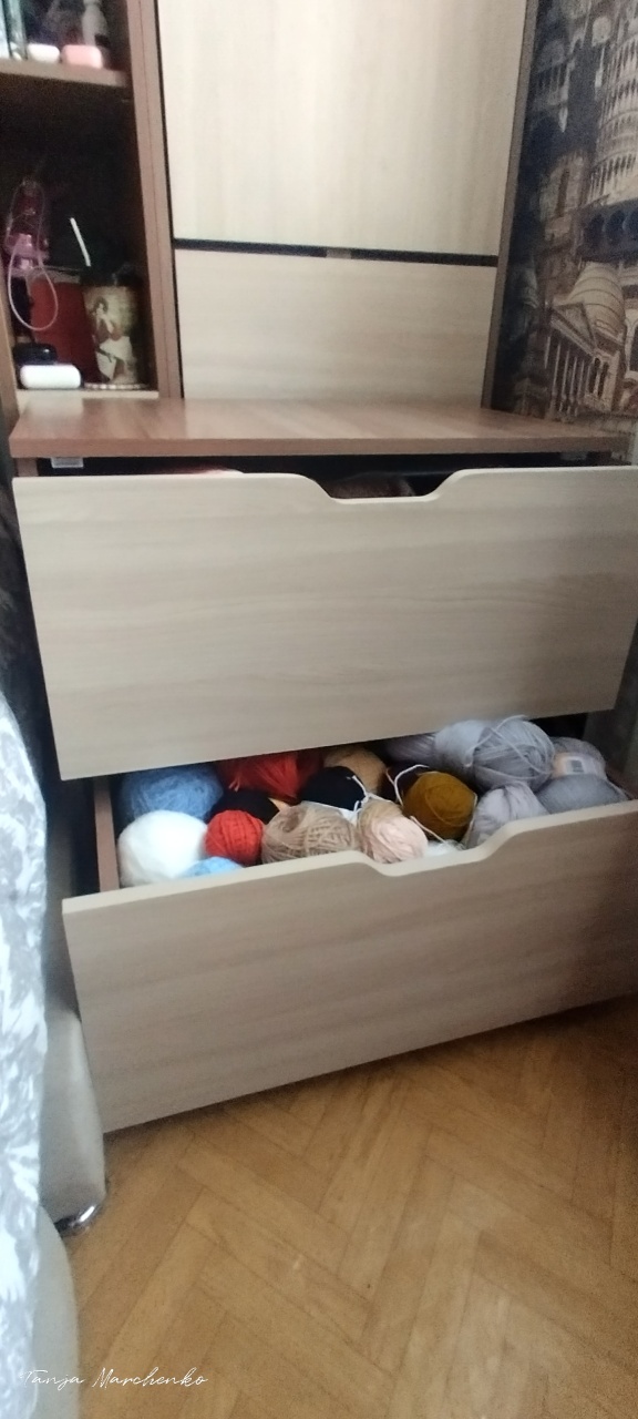 Отличная тумба. Собирается легко. Брала для хранения ниток. На верхний ящик пришлось установить магнит, так как кот очень легко его открывает и спит в нем))). Мой косяк в том, что нужно было глубину делать больше. Не все нитки влезли)))