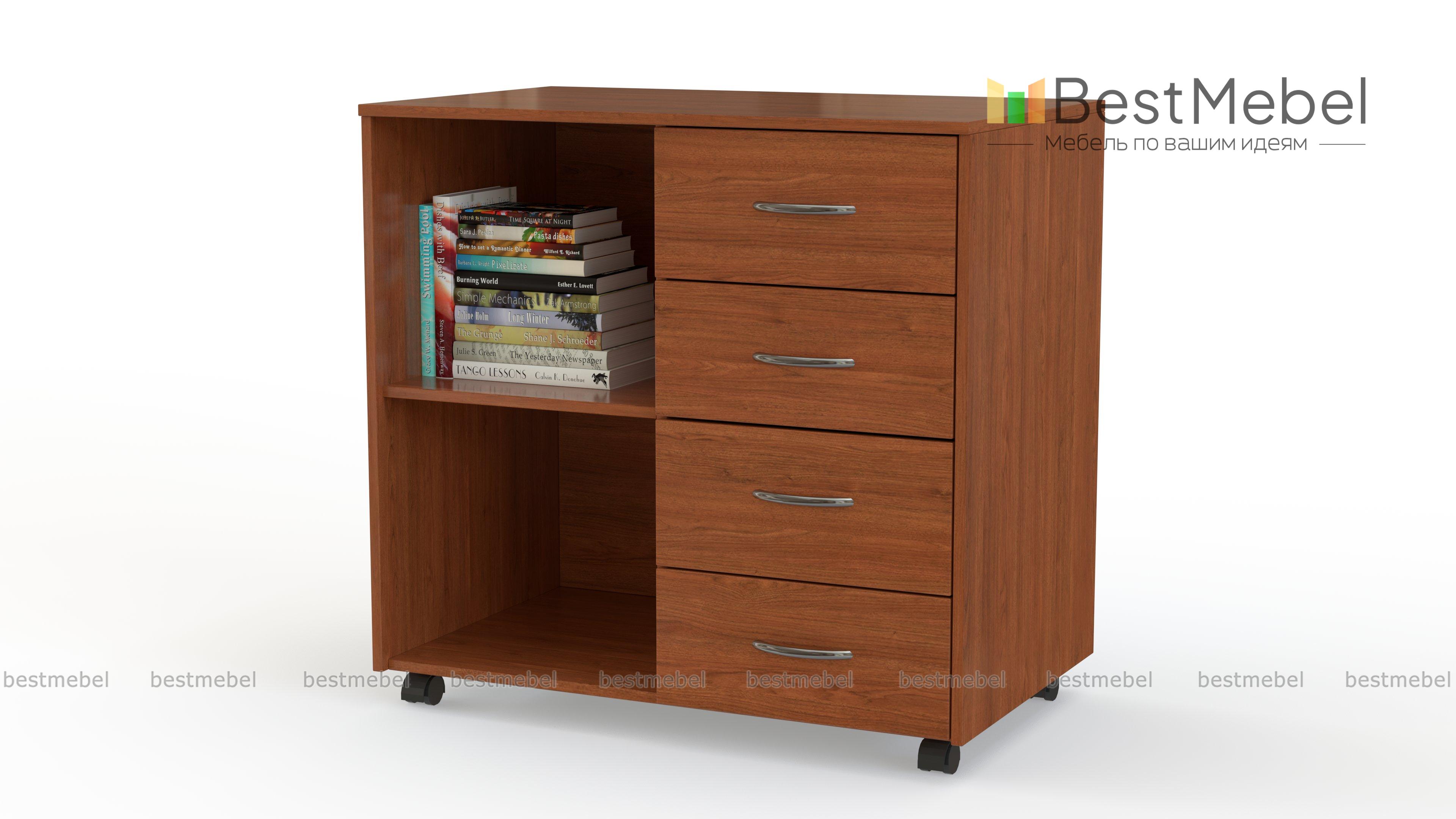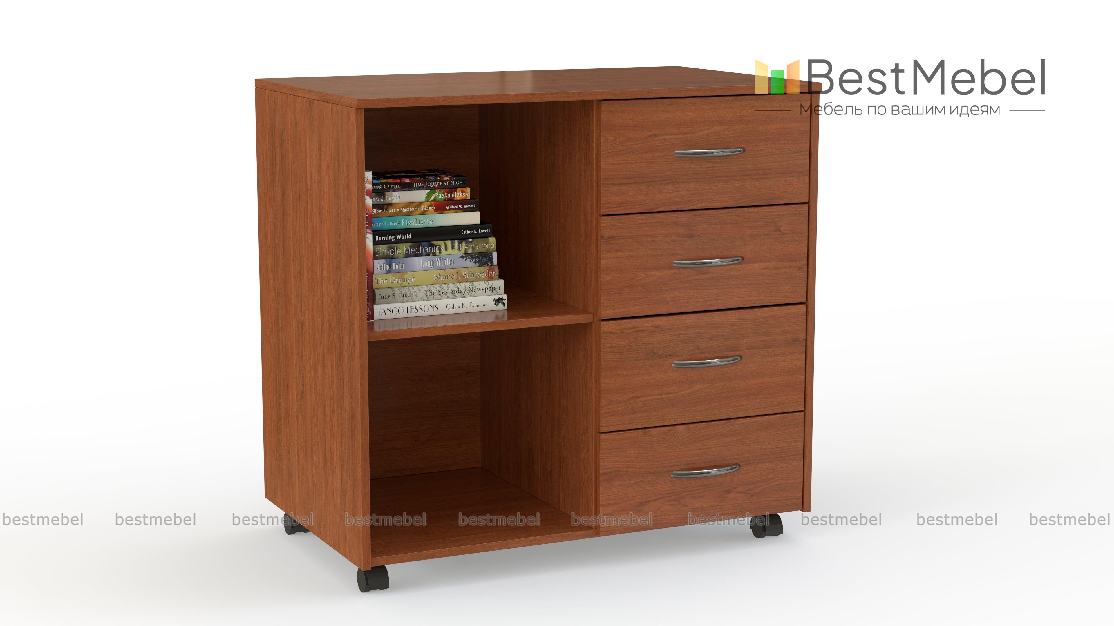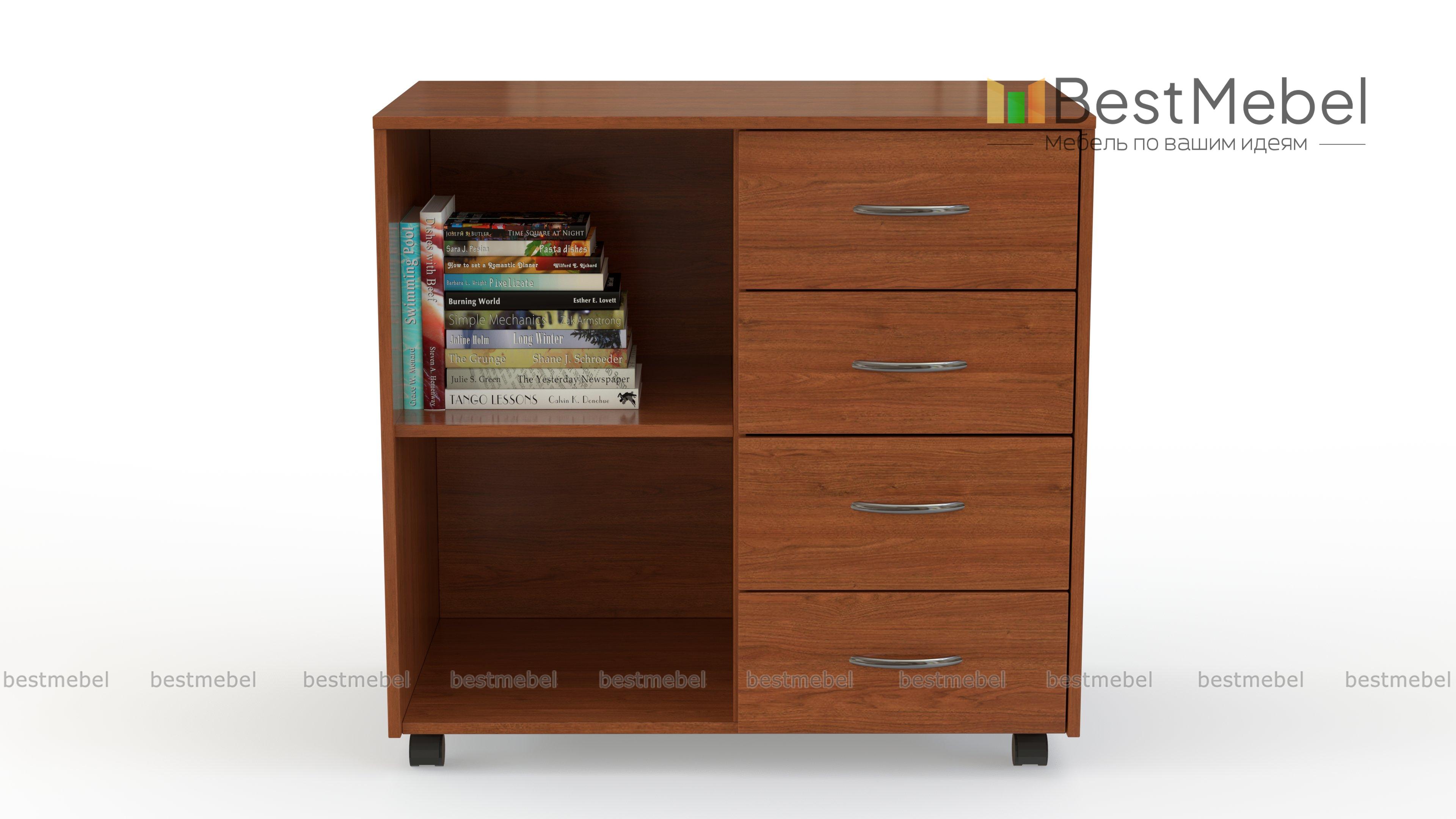 Тумба Ульяна-11 BMS поможет оборудовать комфортное рабочее место в домашнем или офисном интерьере. Универсальная модель лаконична по дизайну и выполняется в древесных тонах на выбор. Удобное размещение папкам с документами, книгам и канцелярским принадлежностям обеспечат открытые полки и четыре выдвижных ящика, а для декоративных предметов или оргтехники предусмотрена широкая столешница. Для простоты перемещения тумба дополнена колесными опорами. Купить тумбу Ульяна-11 BMS вы сможете в нашем интернет-магазине.