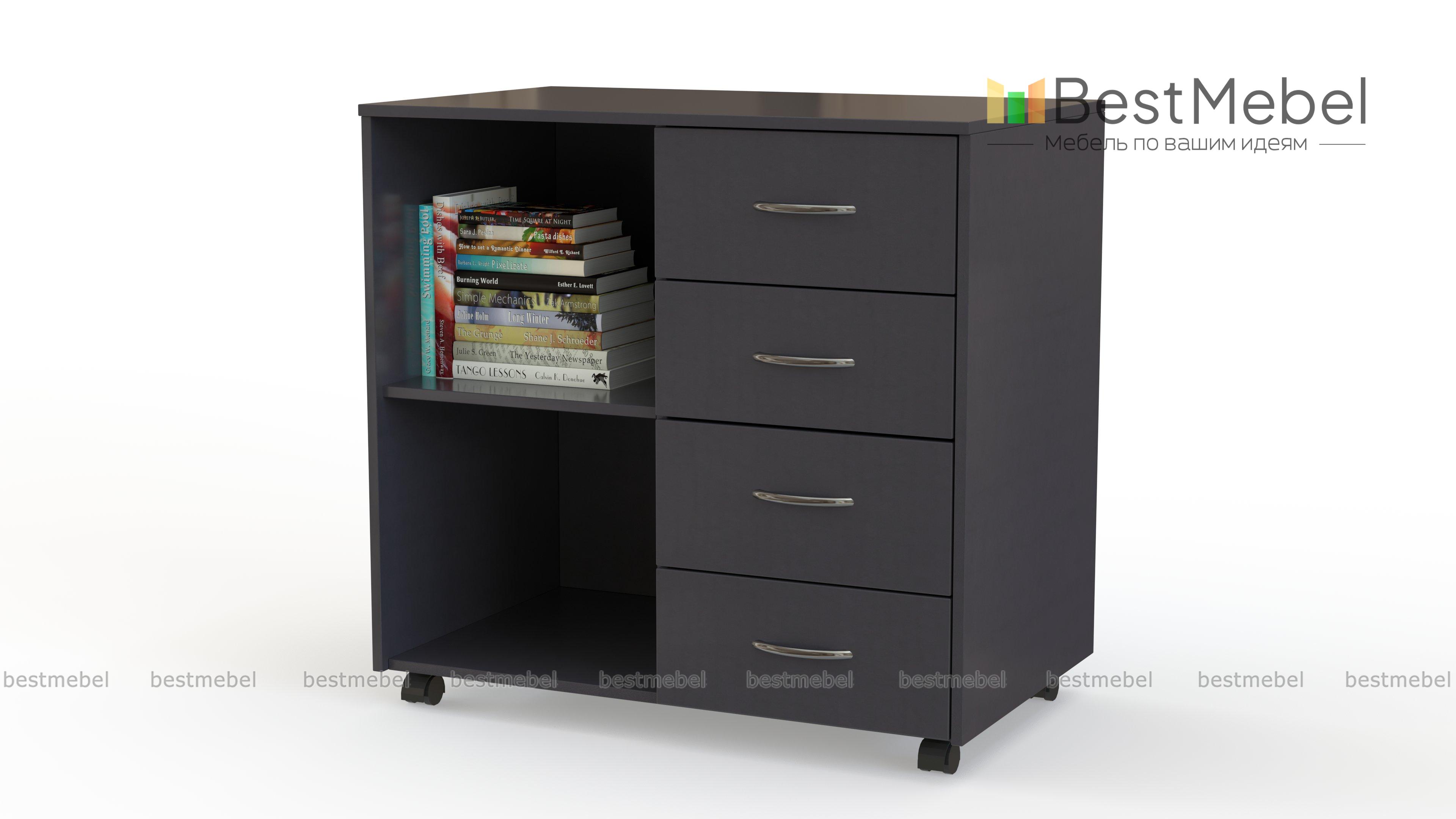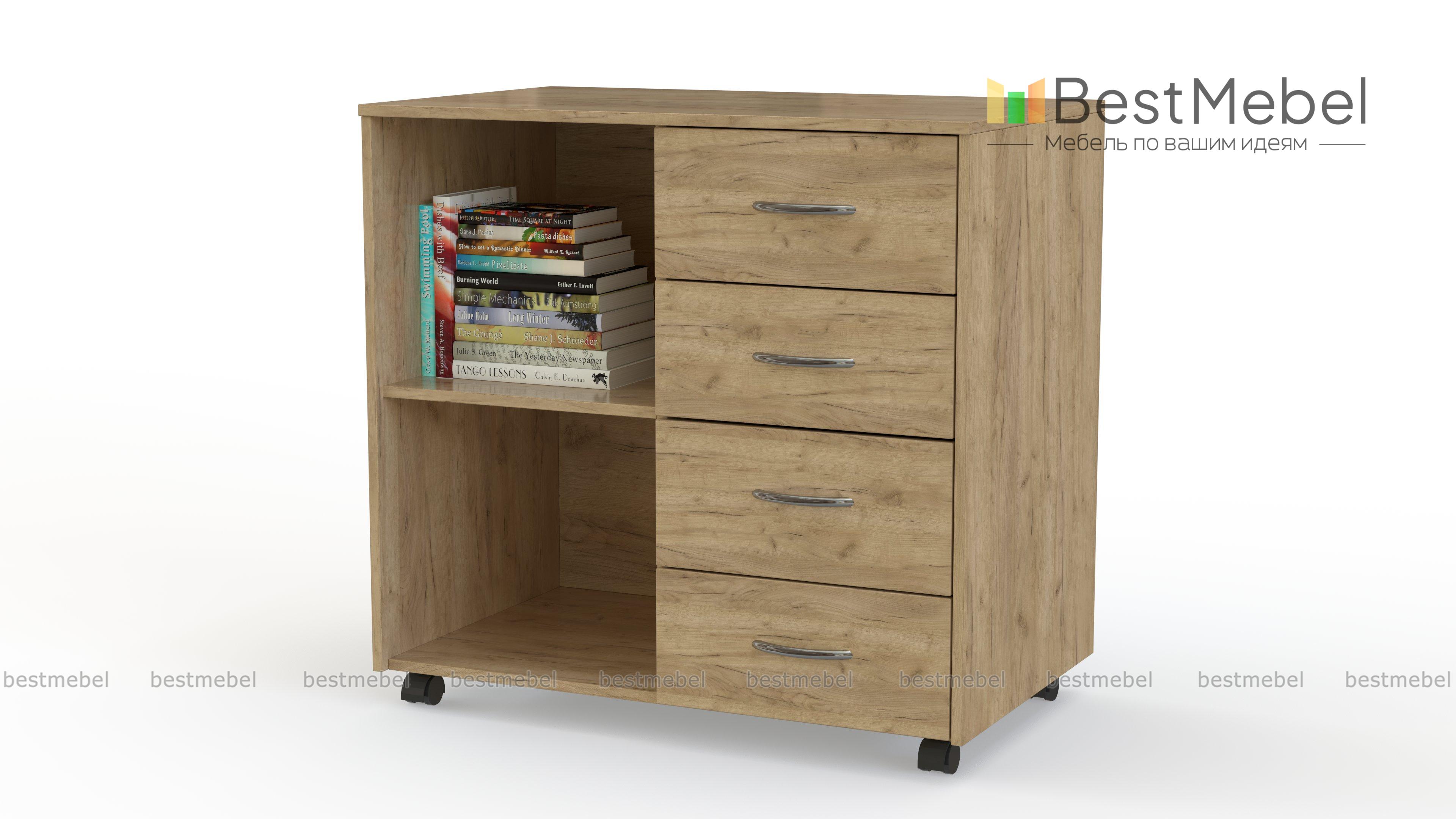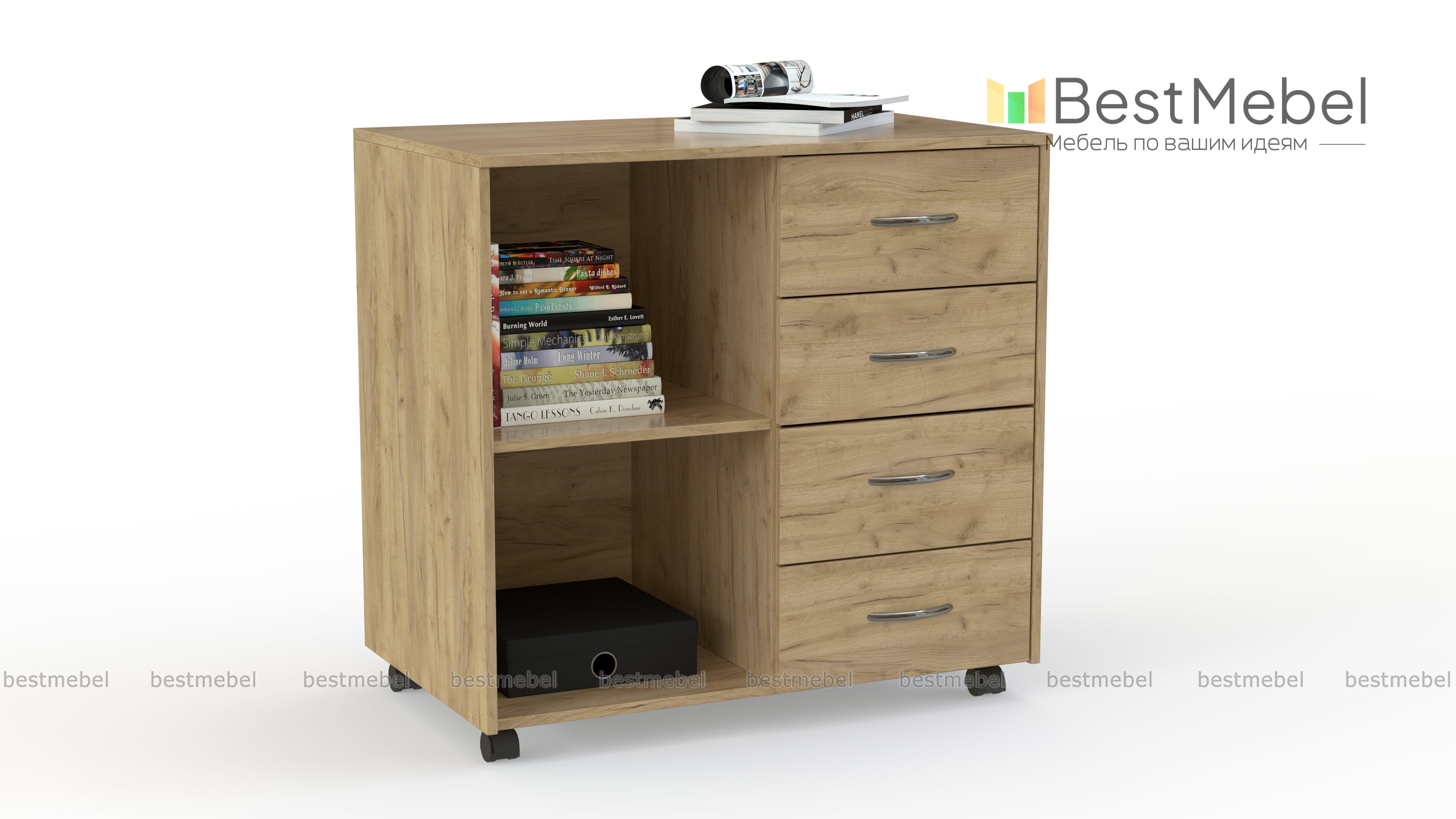 Тумба Ульяна-11 BMS поможет оборудовать комфортное рабочее место в домашнем или офисном интерьере. Универсальная модель лаконична по дизайну и выполняется в древесных тонах на выбор. Удобное размещение папкам с документами, книгам и канцелярским принадлежностям обеспечат открытые полки и четыре выдвижных ящика, а для декоративных предметов или оргтехники предусмотрена широкая столешница. Для простоты перемещения тумба дополнена колесными опорами. Купить тумбу Ульяна-11 BMS вы сможете в нашем интернет-магазине.