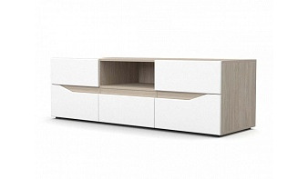 ТВ тумба AAH1 BMS – современная модель для гостиных в стиле минимализм и хай-тек. Широкая низкая тумба оборудована особенно просторной столешницей, удобной для ТВ с большой диагональю, нишей для дополнительной аппаратуры и пятью выдвижными ящиками. Эффектные фасады в белом глянце декорированы контрастными вырезами в тон древесному корпусу. Купить ТВ тумбу AAH1 BMS и использовать самостоятельно или как часть комплекта вы сможете с помощью нашего интернет-магазина.