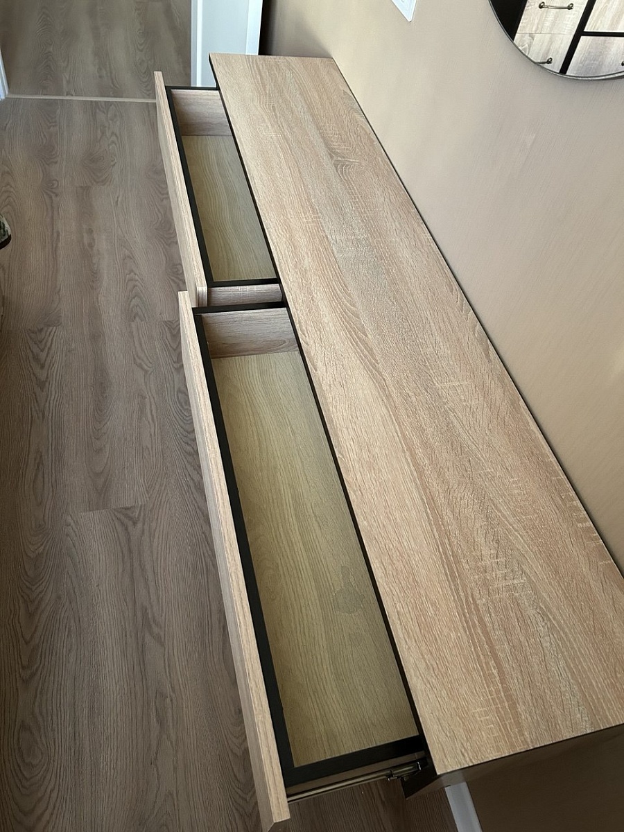 Покупал подвесную тумбу в спальню.Сконфигурировал по своему усмотрению, выбрал размер, это очень удобно. Тумба пришла в срок, доставка была до квартиры. Все аккуратно упаковано, упаковка не нарушена, никаких повреждений нет. Собирал сам, все необходимое для сборки было в комплекте, инструкция понятная, никаких сложностей при сборке не возникло. Тумба получилась ровная, без перекосов, фурнитура работает без нареканий. В общем покупкой доволен.Заказ 00000941139