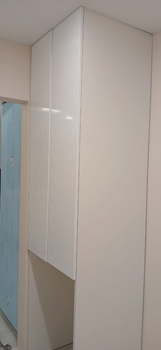 Установили сами. Заказали для сушильной машине. Все детали поменяли по телефону. Шкаф очень понравился