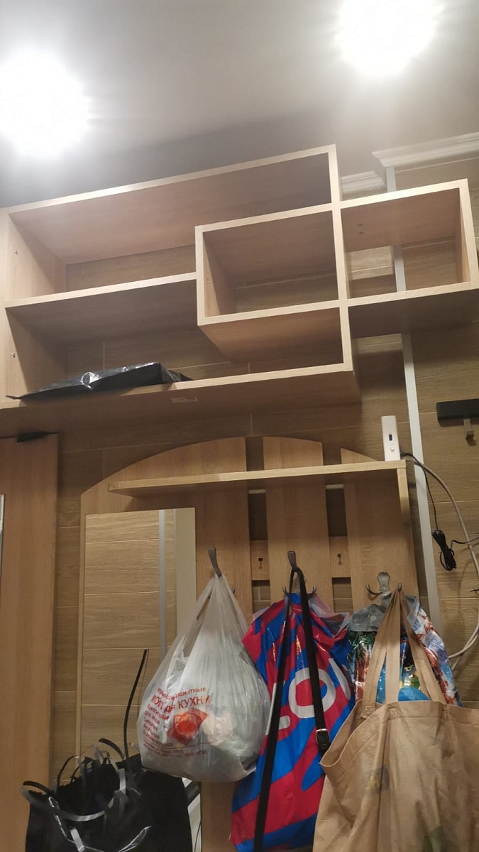 Заказ 00000937340 Эта замечательная антресоль завершила входную группу в прихожей маленькой студии. Очень бюджетно, быстро и качественно!