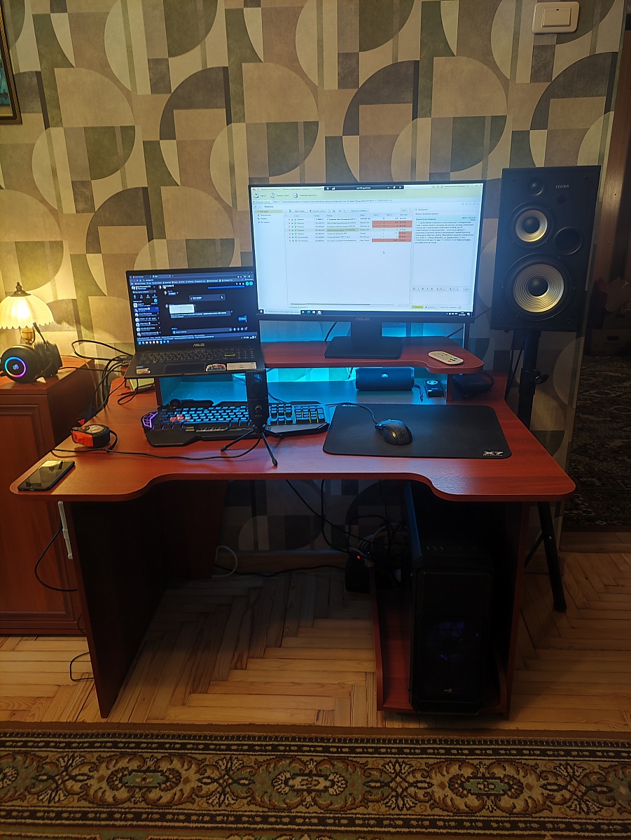 Отличный стол за свою цену. За ним удобно играть и работать (надставка решает). Самостоятельно смонтировал в него неоновую ленту, выглядит круто). Доставили в обозначенный срок, сборка простейшая.