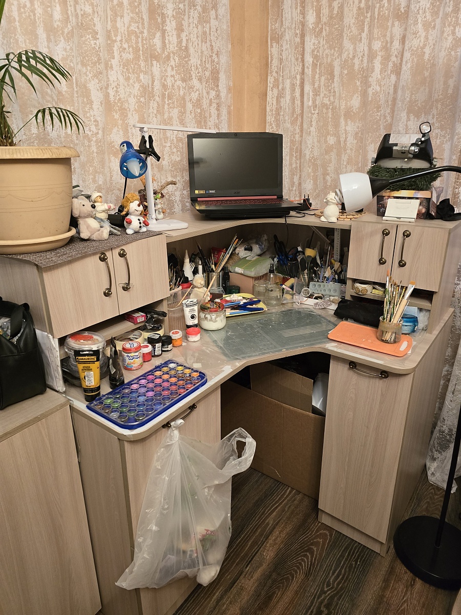 Заказ 1073199. Угловой компьютерный стол Лондон 24 BMS, всё очень понравилось, быстро связались, уточнили размеры, доставили в срок. Стол заказывала для работы( творчества), давно такой искала, очень функциональный, то что нужно, качество отличное! Ещё отдельное спасибо за начисленые бонусы, очень приятно. )Уже не первый раз покупаю в этой компании все устраивает! Фото прилагаю, на столе творческий беспорядок.)))