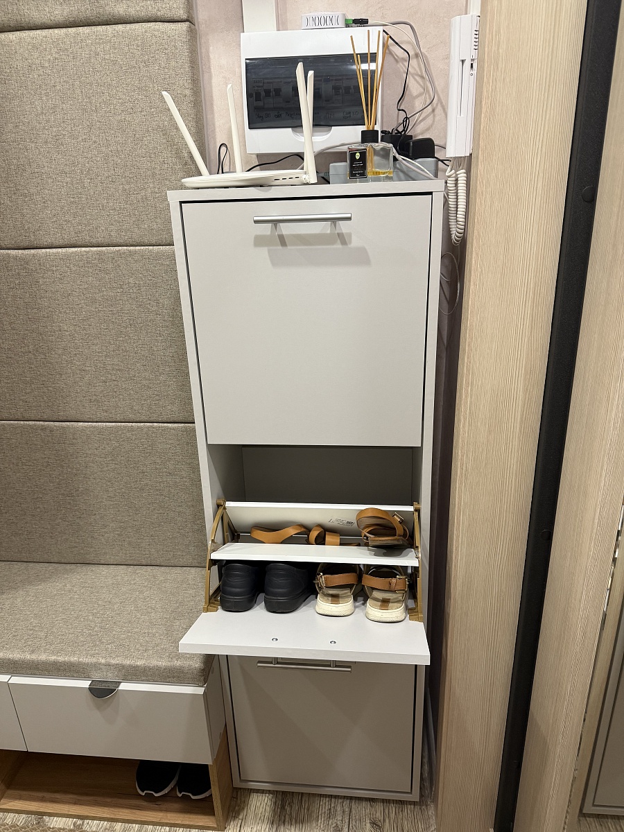 Года два или три, наверное, я всё не решалась заказать себе тумбочку под ТВ. Важно было подобрать размер и тут "о, чудо" это можно сделать!Выбрала я конечно не совсем тумбочку и как потом поняла ещё и не на ножках. Но этот вопрос оказался решаемым))Из минусов заказа:1. Нет на сайте схемы, пришлось расспрашивать по телефону.2. Не точное время доставки.3. Рейтинг товара 5, отзывов нет. Странно.4. При смене фасада с МДФ на ЛДСП что-то сумма меньше не стала)))) 5. Кромка не аккуратно сделана. Что-нибудь придумаю.6. Оказалось не мало деталей со сколами.7. Несколько поврежденных наклеек было тяжело убрать, клей пришлось снимать специальным средством, но хорошо снимались не повреждённые наклейки.Плюсы:1. Возможность сделать по своим размерам. У меня были 1730×600×400. Могла выбрать цвет и комплектацию.2. Несколько раз созванивались с менеджером, обговорили все детали, была выслана схема для утверждения. Моя душа успокоилась.3. Оплата по выбору. Можно и наличными и онлайн. Это здорово!4. Доставка. Ребята молодцы. Хоть нам и сказали другой день))) но они приехали на следующий, сами заехали, нас подождали, всё выгрузили. Вежливые, оставили о себе очень хорошее впечатление. 5. Есть схема сборки. Каждая деталь промаркерована и это очень удобно.6. Собирать легко. Собирали вдвоём с дочкой. Мы любители головой подумать и руками поработать))) Так что нам как игра была собрать этот комод-тумбу. Но было бы всё не так радужно, если бы не было всё вымерено чётко и правильно. Собралось всё без всяких погрешностей! Благодарю тех, кто воплощал в жизнь этот проект. Всё отлично получилось. Прикрепляю фото нашей совместной с вами работы. Удачи вам!