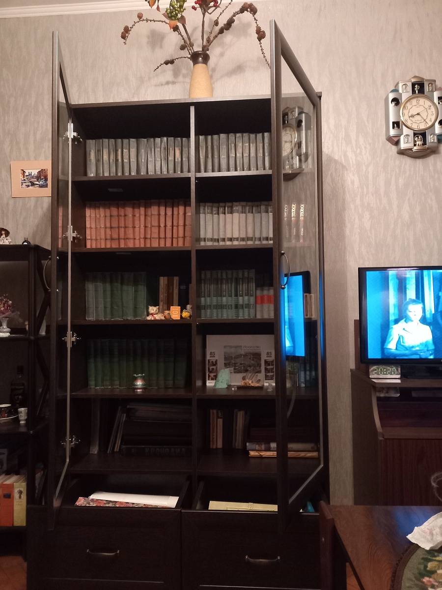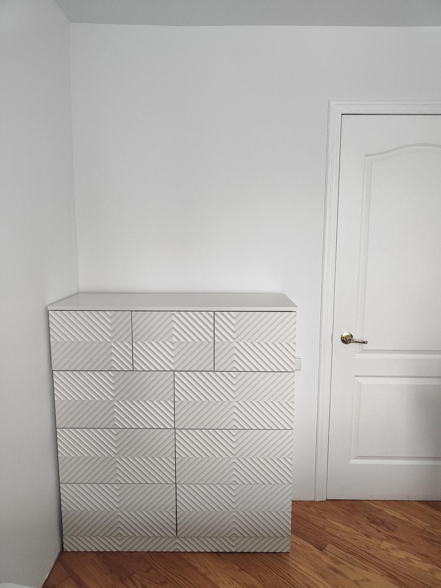 Собрали комод, который сами для себя придумали на основе имеющихся образцов с 9-ю выдвижными ящиками. Фасады с фрезеровкой выполнены и подогнаны очень хорошо. Рисунок был сложный, но все совпало и получилось очень красиво. Отдельное спасибо за нижнюю планку фасада на цоколь- получился единый рисунок и современный внешний вид. Есть замечания по глубине ящиков, т.к. в собранном виде ящики не доходят до задней стенке на 6 см. Как-то этот момент не согласовали. Думаю, сто можно было на 5 см точно увеличить глубину ящиков, что было бы функциональнее, т.к. комод это не только фасад, но и шкаф для вещей, постельного белья и Эти 5см я учитывала при выборе размера комода. Если проблема в фурнитуре, то можно было это обсудить. А так, нам теперь с этим жить. Ещё сборка тоже в некоторых местах не продумана ( центральные внутренние отверстия под симметричные направляющие почему-то одно сквозное. Получается, что направляющие с одной стороны прикрутили, а потом с другой стороны центральной стойки в те же отверстия нужно прикручивать с другой стороны направляющие. Шурупы ломаются друг о друга и конструкция кривая. Пришлось подгонять самим. Не хватило 2-х больших шурупов для сборки корпуса. Думаю, что лучше больше класть, чем меньше. Это уже 2-й наш большой заказ. В любом случае большое спасибо, что Вы воплощает наши мечты! Отдельное огромное спасибо инженеру-конструктору и мастеру по внешнему виду фрезеровки. Получилось ОГОНЬ!