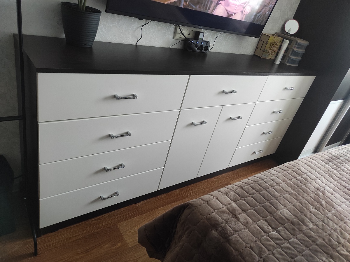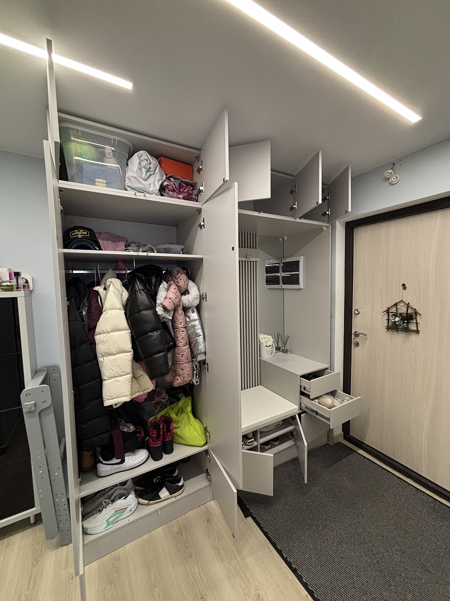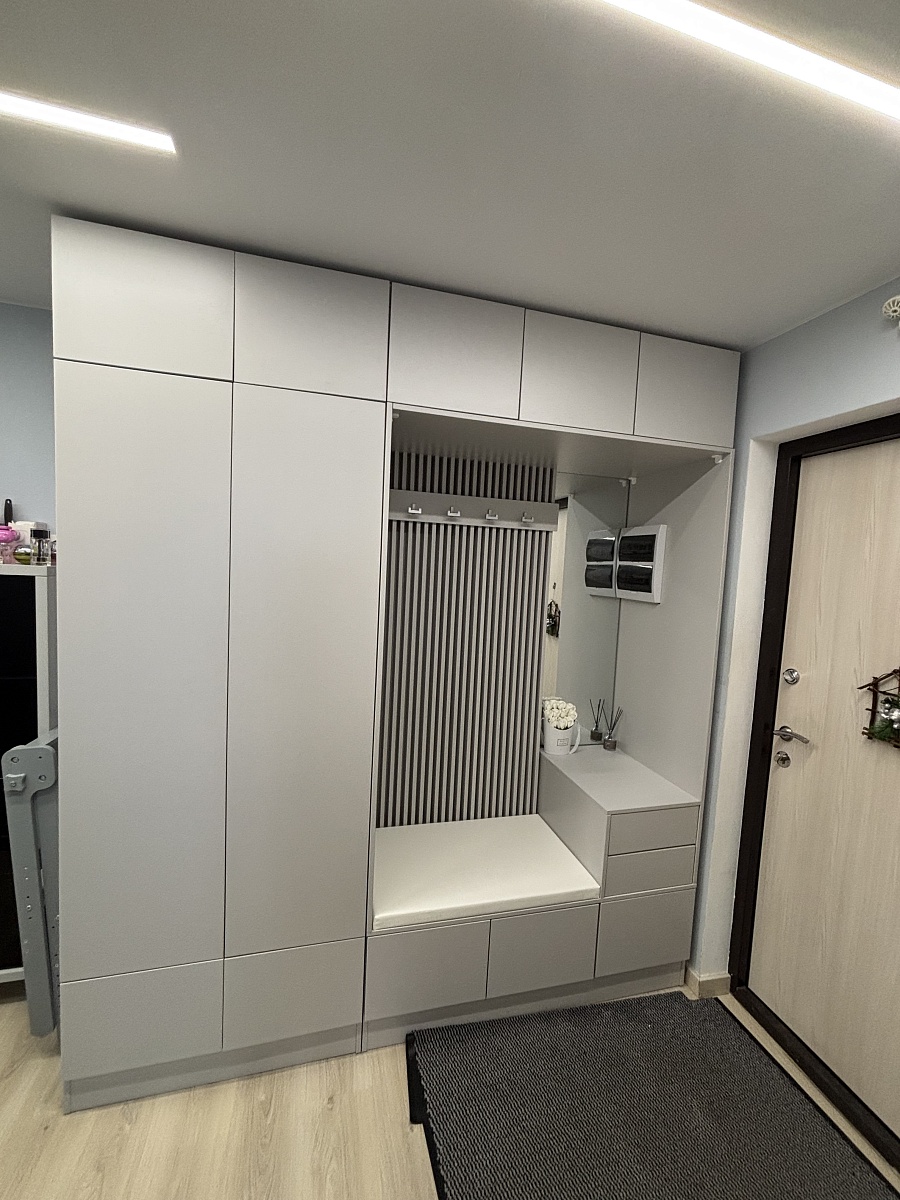 Заказ 00000270539, эскиз Прихожая Дублин 34 BMS (2050х2370х600)Нашли изначально фирму на известном маркетплейсе, изучили ассортимент прихожих и выбрали подходящий нам вариант готовой прихожей . Удобный конструктор на сайте помогает задать все нужные нам параметры - изменили размеры изделия, цвет, отобразили зеркально, добавили кромку. В общем, сумма заказа конечно же изменилась, но разница в цене была не критична. На изготовление и доставку ушло ровно 14 дней. Сборкой прихожей занимался мой муж сам, постепенно. Здесь есть минус - схема в бумажном варианте очень мелкая и неудобная , но в электронном виде можно через куар-код отсканировать и открыть версию с сайта, там пошаговая инструкция более доступная. По качеству прихожая соответствует ожиданиям. Есть небольшие сколы , но они не видны , к счастью. Из фурнитуры- мы решили заменить крючки, которые были в комплекте, на другие подходящие по цвету ( в комплекте были черные, а мы хотели серые), а также поменяли доводчики ( нажимной механизм push to open) на магнитный толкатель скрытого монтажа (это личное желание мужа). Фурнитура в соответствует качеству и цене .В целом покупкой остались довольны, планируем еще детскую мебель заказать. Рекомендую!