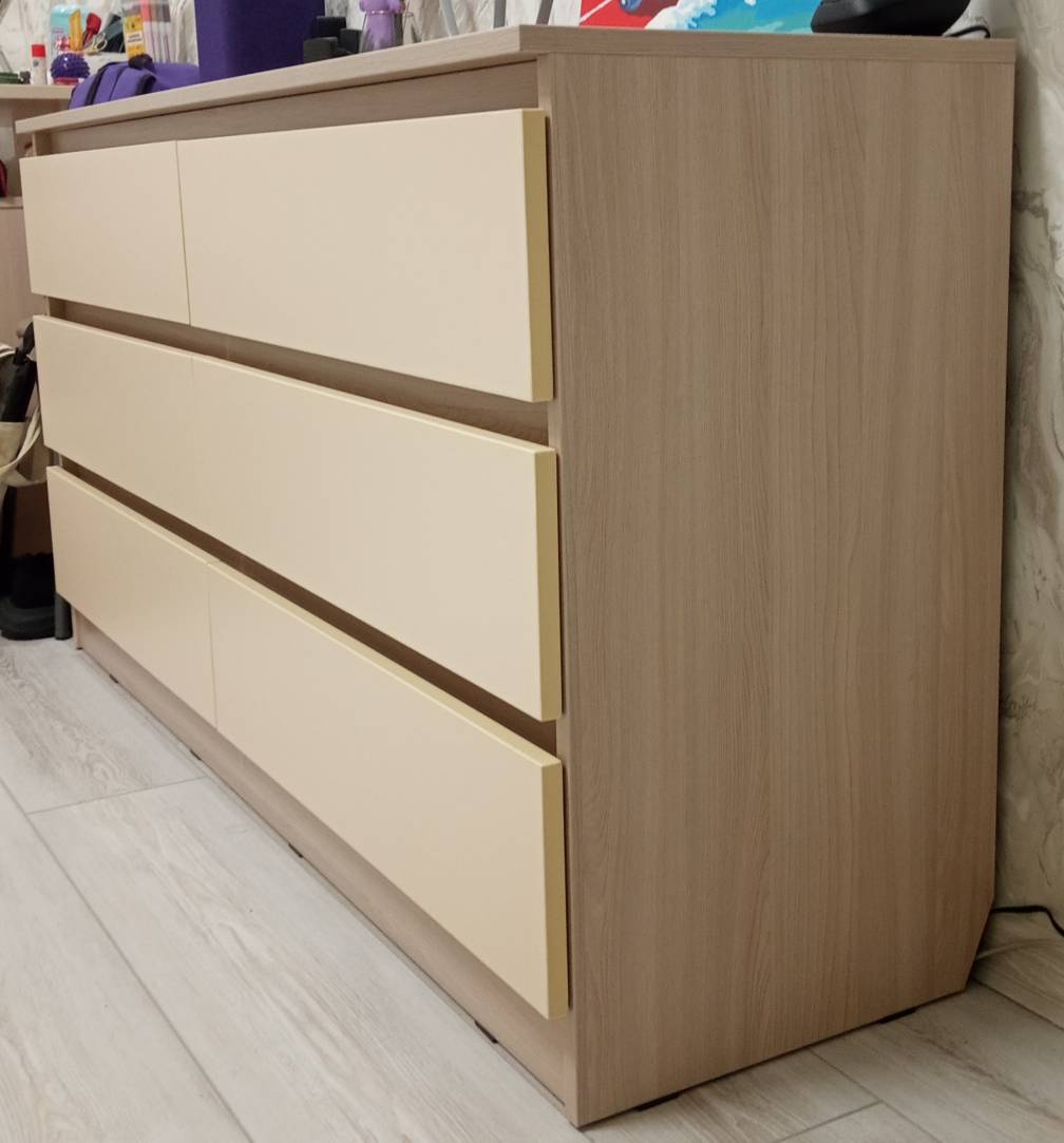 Заказ №1178670.Давно присматривала комод на этом сайте, выбирала между разными моделями, по итогу остановилась на данной. Оптимальная по размеру, конфигурации, размер брала стандартный, в цвете Венге Цава. Доставили быстро, всё отлично, собирала сама. Вот тут началось веселье - инструкция совершенно не рассчитана на самостоятельную сборку, понять по ней что-либо практически невозможно, из-за чего сборка растянулась на несколько дней. Имейся нормальная инструкция - цены бы не было фирме, по остальным параметрам.К самому комоду претензий никаких, все итоговые перекосы исключительно на моей совести, очень довольна приобретением.