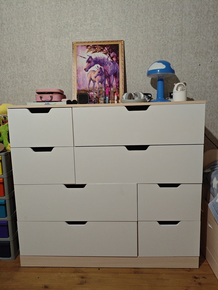 Всё превосходно:- Вежливые сотрудники по телефону и водитель, приятное отношение со всеми,- Товар доставлен отлично упакованный, все элементы без сколов и дефектов,- На всех соответствующих элементах есть метки, отверстия и т.д. для дальнейшей сборки,- Сборка без проблем, все элементы в сборном виде ровные, без зазоров.Советую данную антресоль и BestMebel, уверен вся продукция качественная!