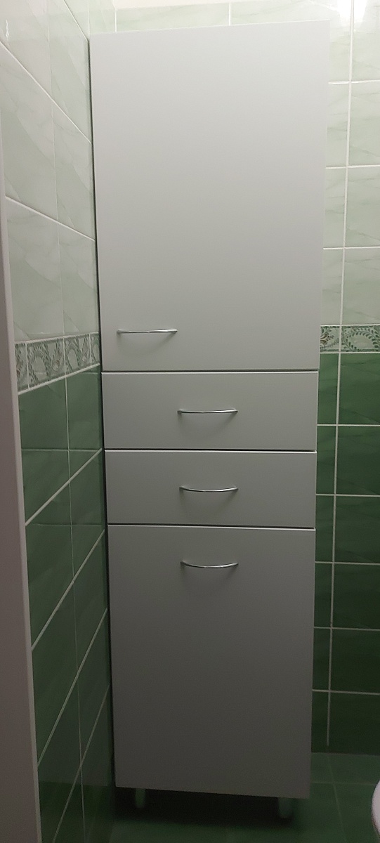 Это мой 3-й. Пенал понравился и важно, что можно изменить размеры, цвет..Команда работает быстро и очень корректно общаются с заказчиком.На всех этапах поддержка работает, чуть ли не круглосуточно. Заказ незначительно был изменён только ширина 50 см. Консультант предложила другие навесы (?) для дверц, объяснив их преимущество.Доставка была тоже быстрой, водитель занёс в квартиру, всё было аккуратно упаковано.Сборка в удобное время на следующий день. Сборшик приятный молодой человек, работал просто красиво, никаких вопросов у меня даже не возникло. Всё снимается на видео. Пенал поставили в туалете место просто для него. Для хранения порошков, гелей и других хозяйственных пренадлежностей места достаточно. Организация на всех этапах отлажена до мелочей.Спасибо всем сотрудникам фирмы BestMebel. Особенно с кем общалась.С уважением Светлана