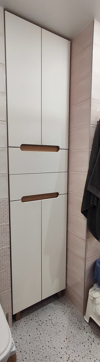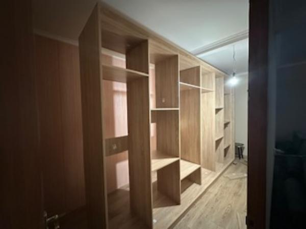 Заказывала шкаф купе по подобию этой гардеробной, в другом цвете и немного изменены внутренности. Шкаф классный, небольшие нюансы- если у вас вдруг кривой пол как у нас (на ширине шкафа в 3,6 это сильно заметно), то задние стенки ровно не встанут в пазы) нужно имитировать ровный пол и тем самым ровно закрепятся стенки. А также не было каких то необходимых отверстий в боковых стенках, пришлось самим. А так в целом все хорошо.