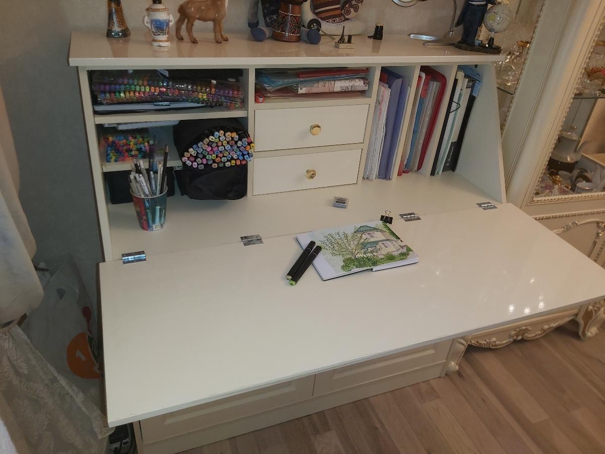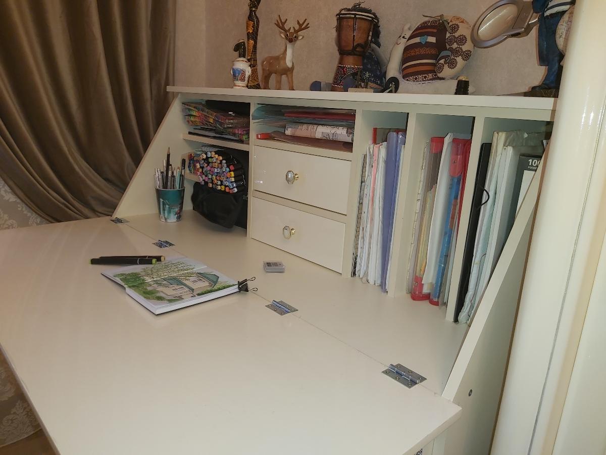 Приобрели комод-секретер (заказ 00000422549) как рабочее место для творчества и рукоделия. Легко подобрали цвет, подогнали под необходимый для нас размер, немного изменили расположение внутренних полочек. Комод идеально вписался в наш интерьер. По нашему заказу делался эскиз, порадовала оперативность: быстрая обратная связь, изготовление, доставка и сборка. Но главное это доступная цена. Большое спасибо за сотрудничество, мы ооооочень довольны.