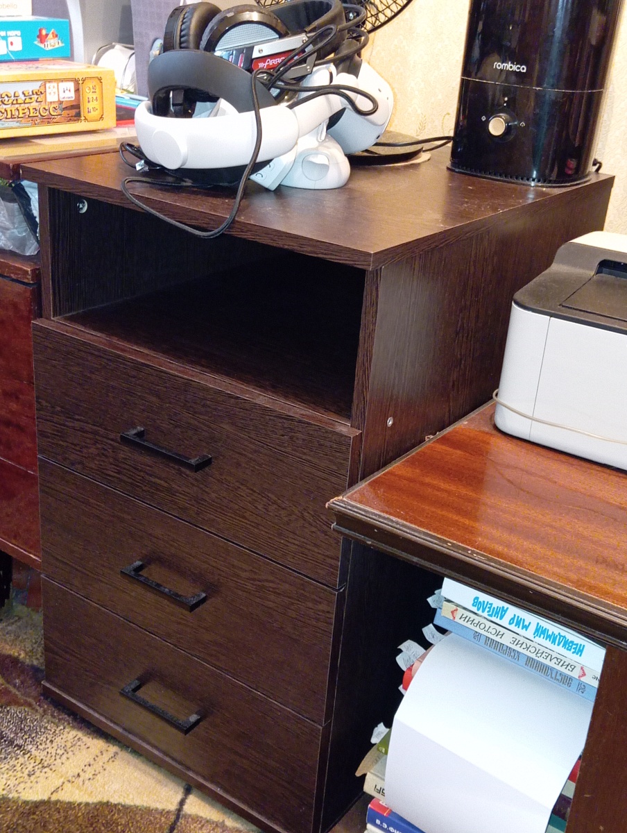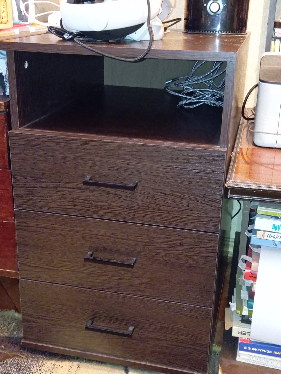 Давно приобретал (заказ 00000890786). Пример того, когда надо что-то купить, чтобы и поверхность была, и место для организации многочисленных вещей, и как-то в ограниченный интерьер вошло, и при этом изначально не знаешь, какое именно изделие хочешь приобрести. В итоге остановился на комоде (хотя изначально искал стол), и очень доволен этим изделием, в котором можно подобрать размеры и компоновку под свой случай. Стоит уже много лет. Серьезный недостаток - абсолютно нечитаемая инструкция, за это снимаю звезду в удобстве.