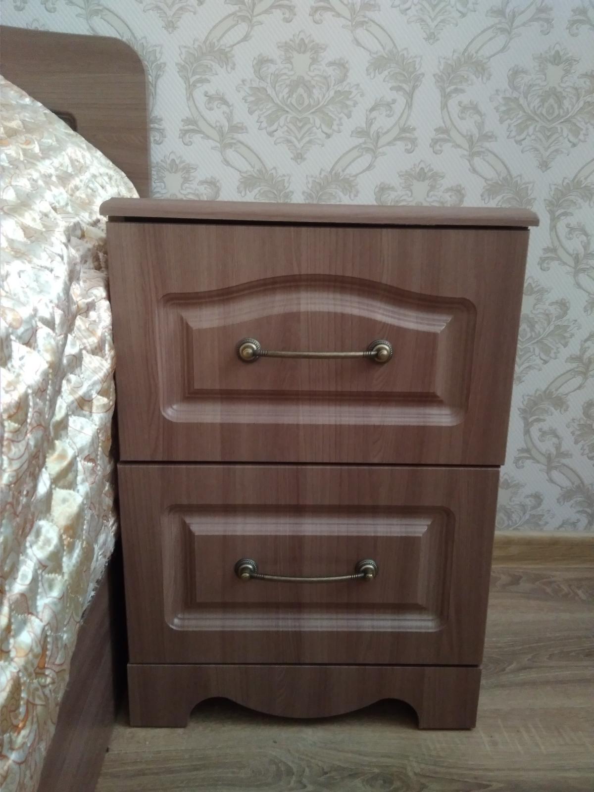 Брали к кровати "Белая ночь", цвет - ясень шимо темный, по своим размерам: высота 57, глубина 35, ширина 40. Получилось симпатично, как-будто гарнитур.
