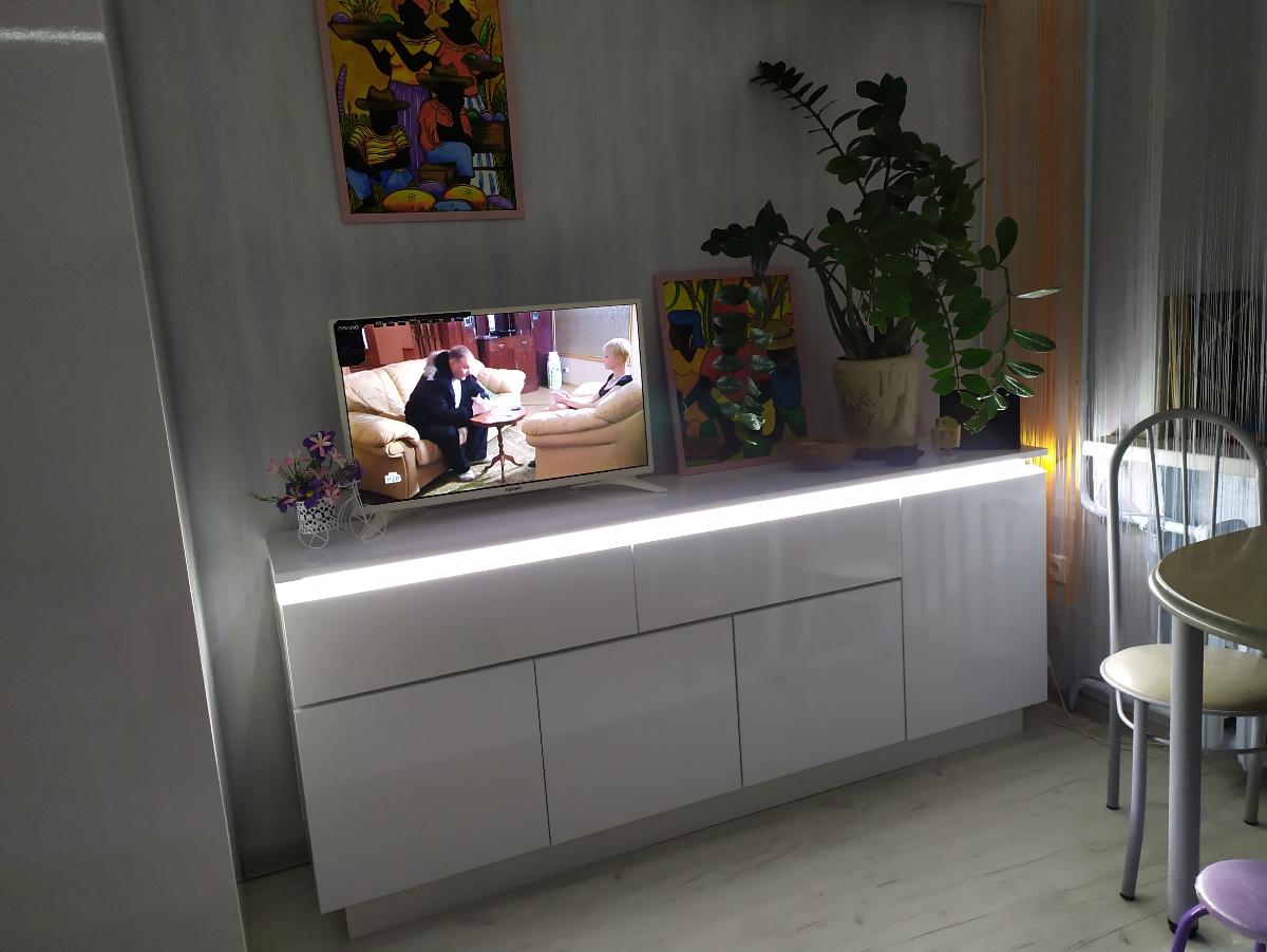 Хорошая тумбочка. Хорошо смотрится. Собирали сами. Приделали колесики, , т. к часто раскладываем диван и приходится отодвигать тумбочку.