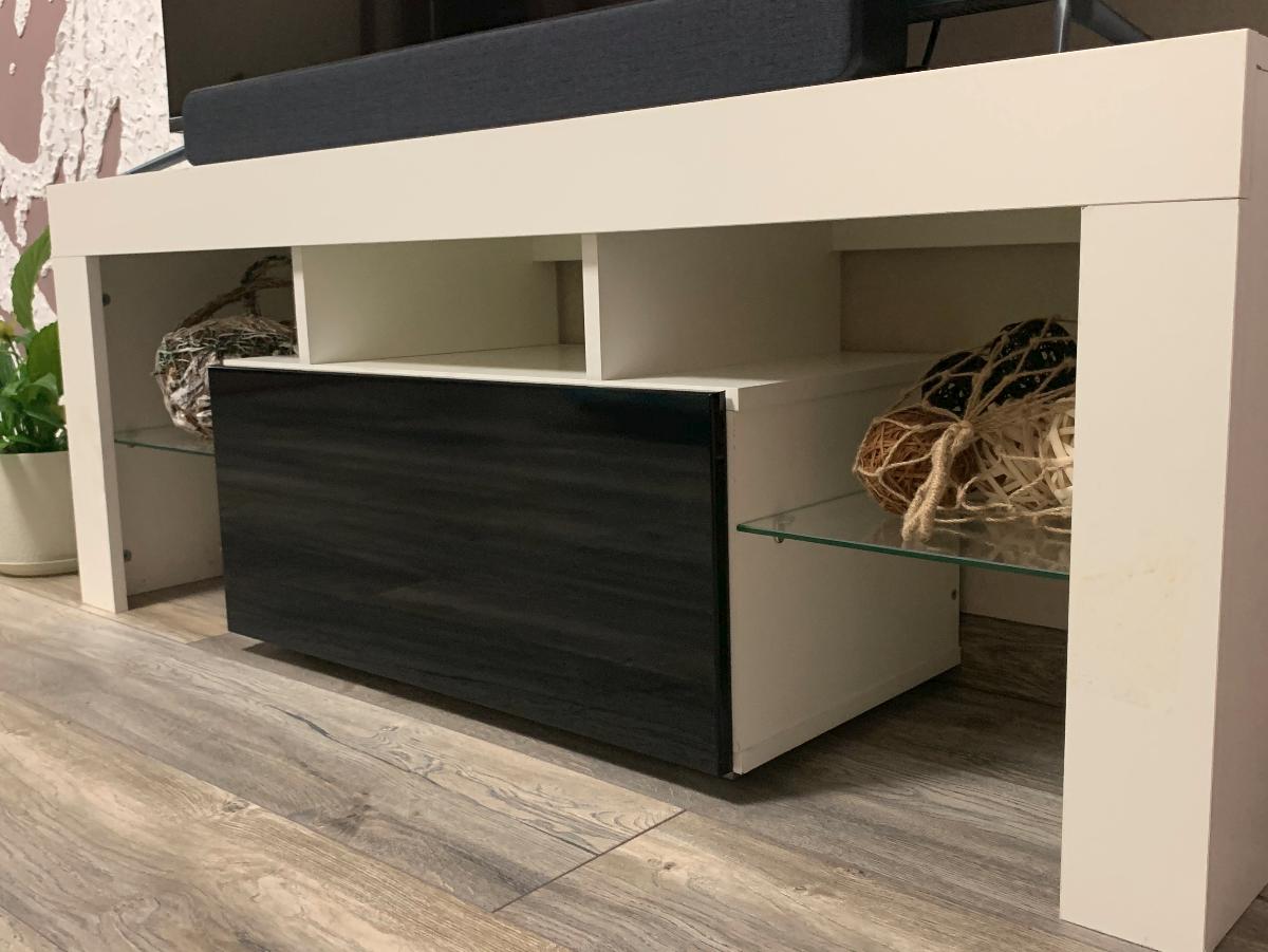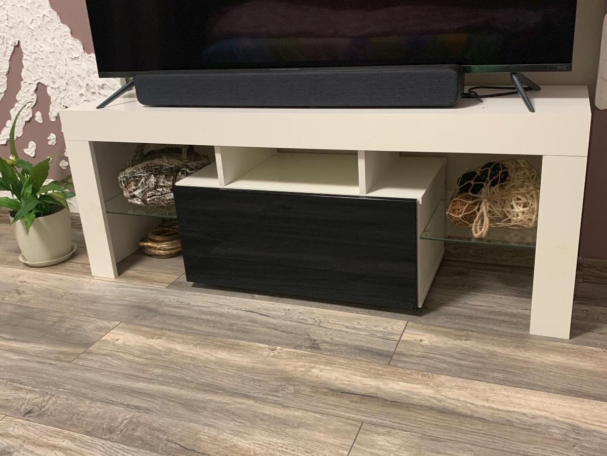 Смотрится великолепно, не занимает много места, очень компактный. Столик покупала для аппаратуры. Очень удобно, легко можно перемещать по комнате. Цвет и размер выбирали сами. Собрали тоже сами. Очень довольна покупкой.