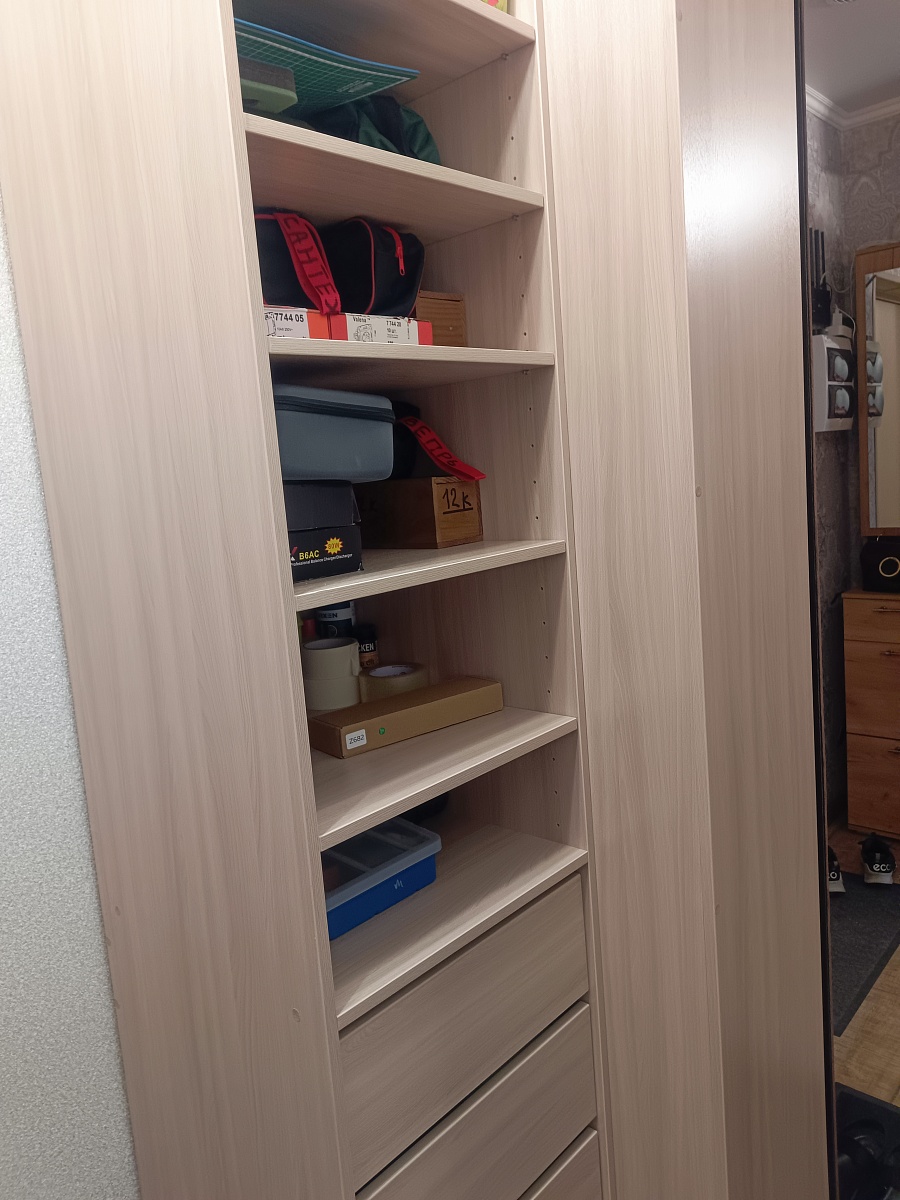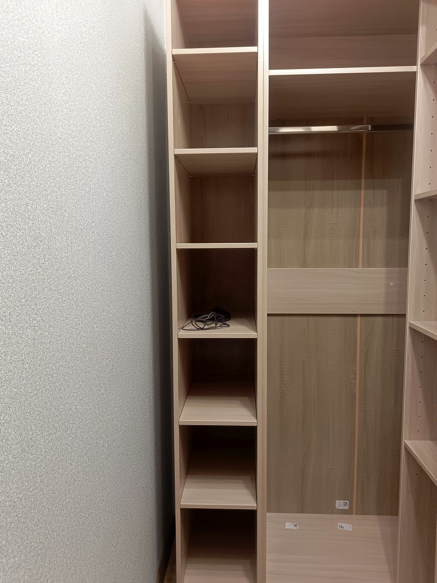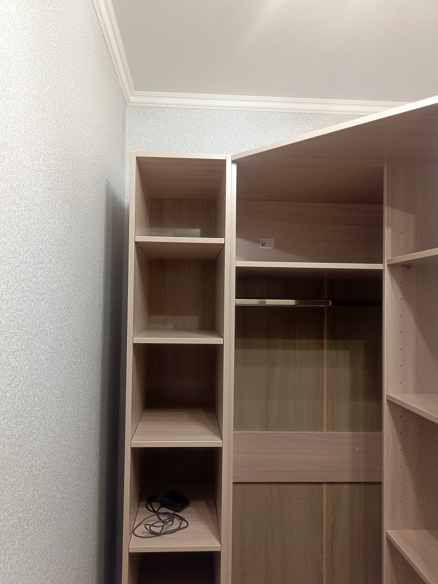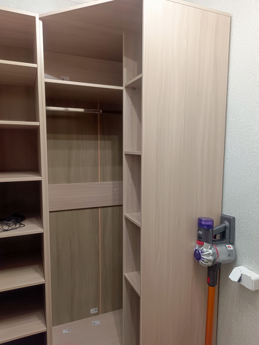 Угловой шкаф без двери брали в гардеробную. Собирал сам.  Удобно, функционально.