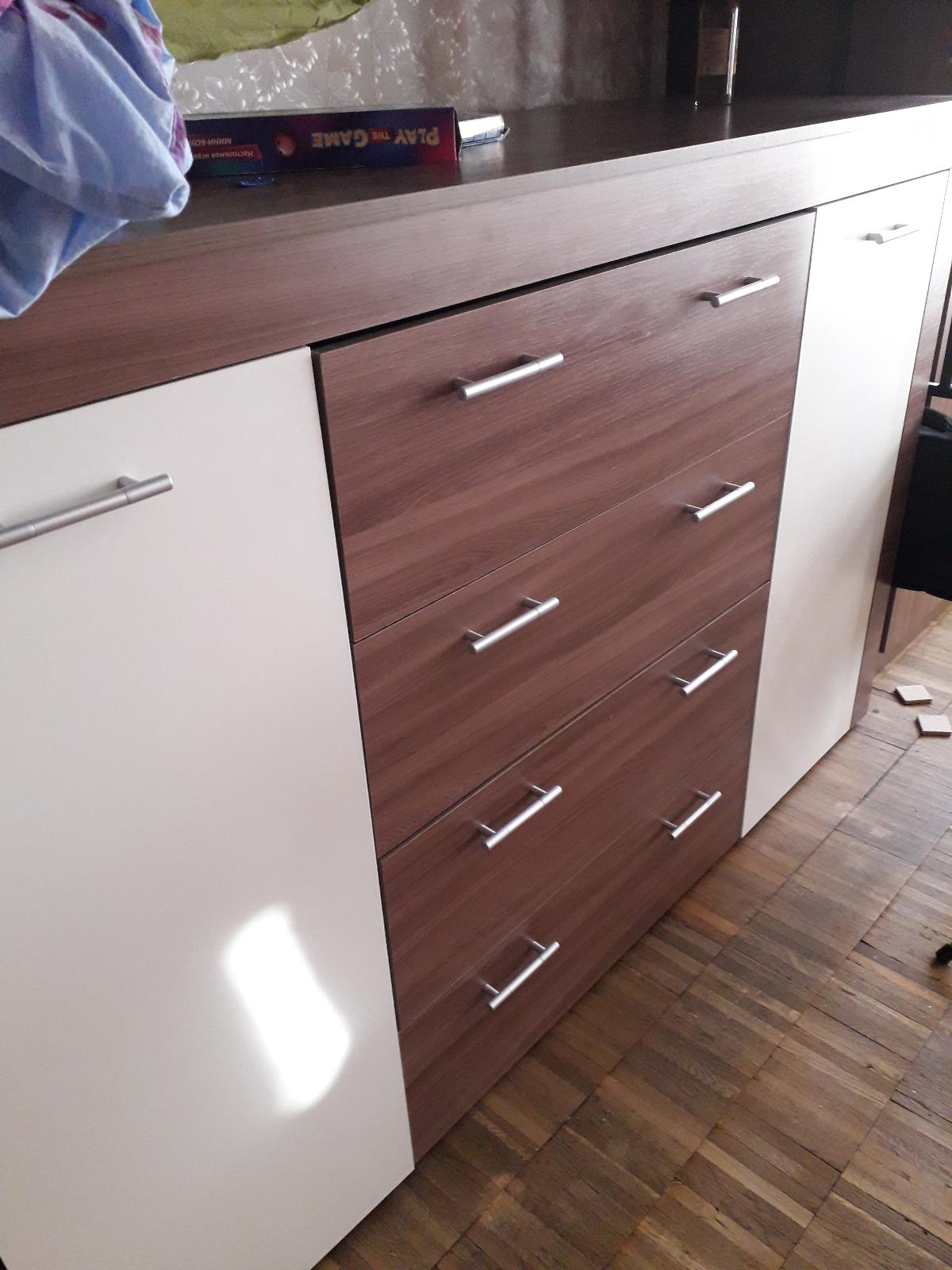 № заказа 367260 Комод 3-х дверный 2 ящика Corano BMS (1600х1100х420) 367260 Комод 3-х Долго с женой выбирали комод, что бы радовал глаз и совпадал с нашим кухонным гарнитуром, в интернете увидели, понравился. Вначале было недоверие к заказу из интернета, решили рискнуть и не пожалели. Оформили заказ быстро с сайта. Оперативно с нами связались, уточнили все пункты заказа, подробно разъяснили все вопросы. Оказалось что данная модель изготавливается впервые, эксклюзив так сказать для нас. Через неделю перезвонили, еще раз уточнили адрес доставки и отправили курьерской службой. Все получил быстро. При сборке вопросов особых не возникло, если есть голова и руки, то по приложенной инструкции все собирается, ни каких допилов и доделок не требуется, всех шурупов/крепежей хватило с избытком. В поставке не доложили микролифт для дверцы, отдел по претензиям все выслушали, извинились и за их счет выслали еще раз курьером. Есть пожелание, стекло делать матовым или придумать как закрыть фальш панелью петли на дверце со стеклом, так как их видно и немного портит вид (на фото видно). Так что мы остались очень довольны, спасибо за проделанную работу и чуткое отношение.
