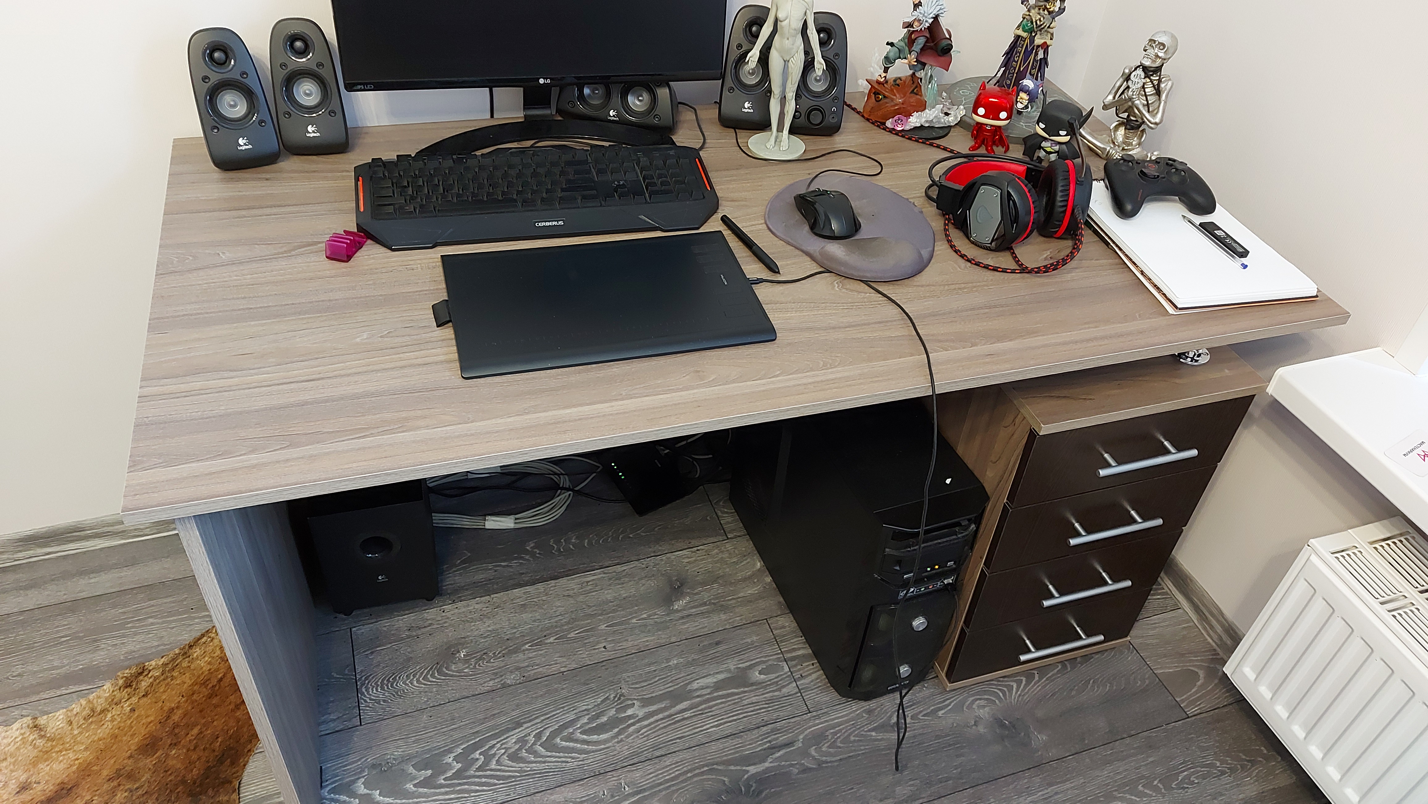 Я в восторге от него. Вмещает все! Ящики очень удобные. Я ещё заказала к нему дом шкаф и полки боковые и вышла стенка полноценная.