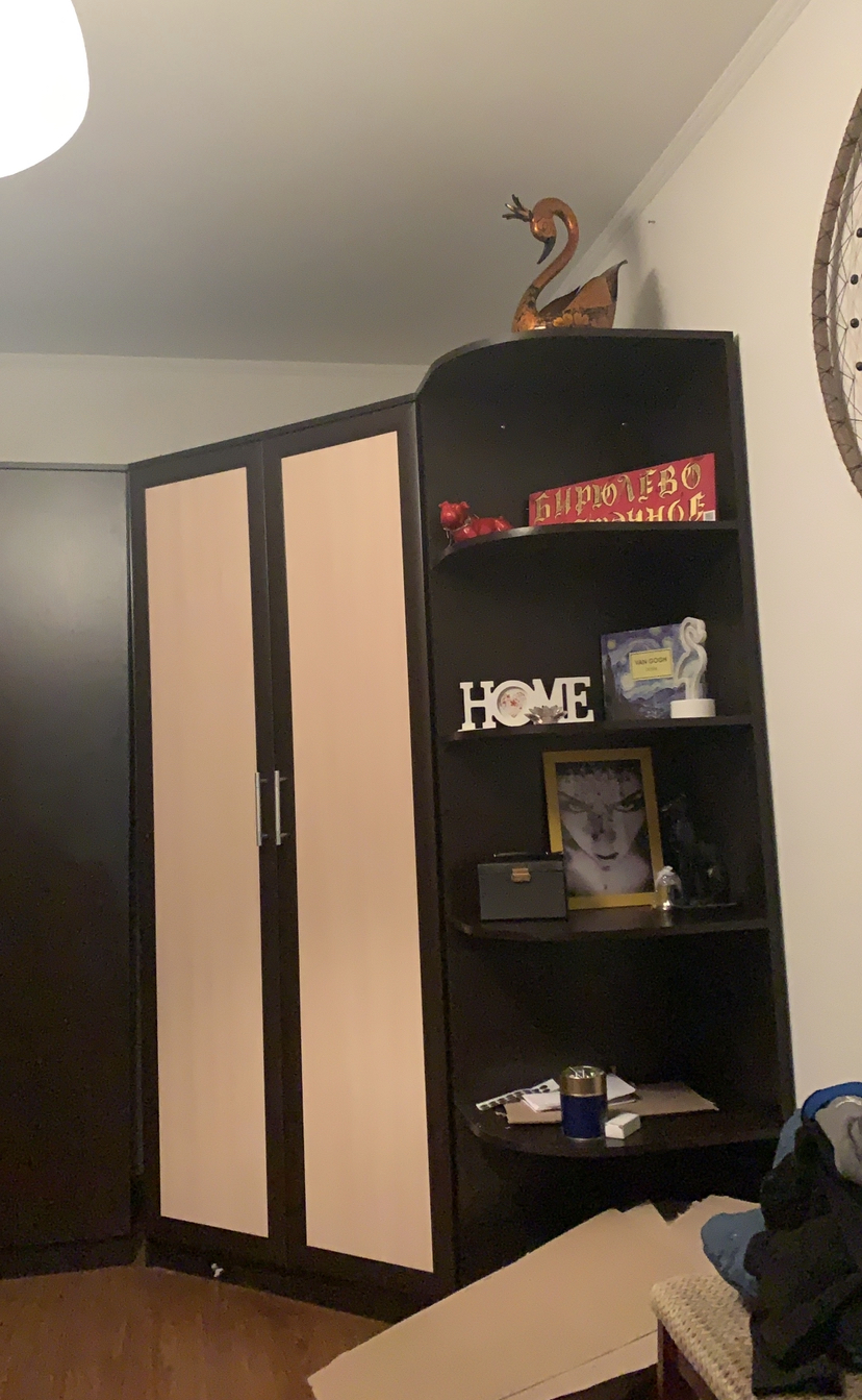 Угловой шкаф вписался в угол как будто там всегда и был. Доставили бесплатно. Проблем при сборке не возникло. Единственное замечание, трудно отрывать наклейки с деталей. Заказ 00000308981 от 16.11.2019