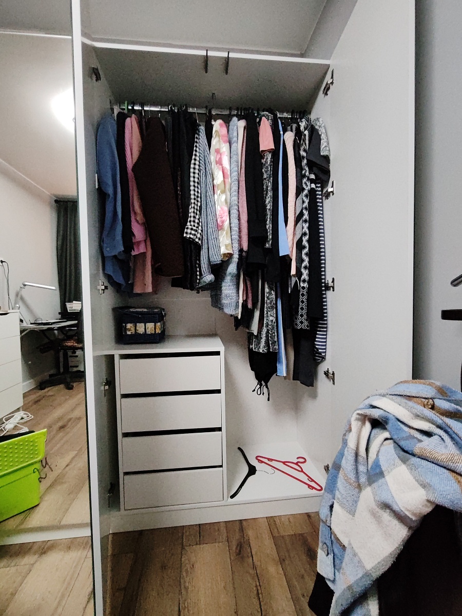 Приобретала шкаф Ава 4 распашной по индивидуальным размерам: 65*2400*43, белый на лоджию. Вид собранного шкафа и качество самого шкафа превзошел мои ожидания (не возлагала каких-то на супер качество) Производителю спасибо!  Доставили быстро, сборка партнерами.  Размер полок  тоже по моим размерам, все что надо поместилось и ещё свободные полки остались. Оказался очень вместительным и даже более того.