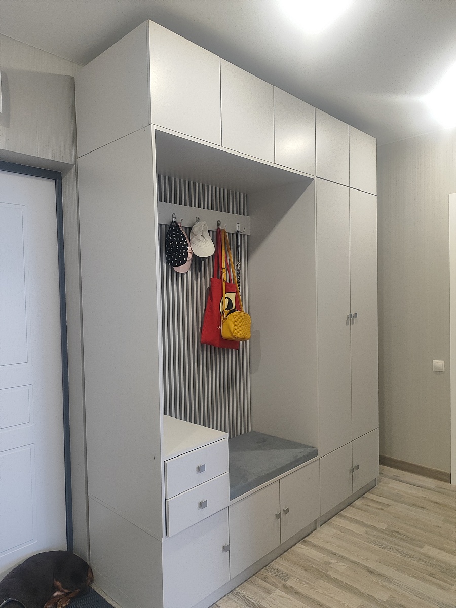 Заказ 00000989902. Шкаф "Остин Нео 16 BMS" мы брали в спальню, чтобы навести порядок с одеждой. Первое, что понравилось – возможность выбрать цвет. Взяли серый – смотрится очень стильно и современно, именно такой нейтральный, но не скучный оттенок, который мы искали. Черные ручки стали отличным контрастным акцентом, завершили вид. Сам дизайн действительно минималистичный и аккуратный, не перегружает пространство.Функционально шкаф оказался удобным. Три двери – хороший размах. Отделение для вешалок вместило все платья и костюмы, полки отлично подошли для футболок, свитеров и постельного белья. Распашная антресоль вверху – спасение для чемоданов и сезонных вещей, которые не нужны каждый день. Зеркало на центральной дверце – просто бомба! Очень удобно видеть себя в полный рост перед выходом, не бегая по квартире. И правда создает ощущение, что комната чуть больше.Но сборка... Сборка была испытанием.Деталей много, и самое сложное – установить вертикальные стенки (боковины и центральную перегородку) в одиночку. Это просто нереально. Они большие, тяжелые, их нужно держать строго вертикально и одновременно прикручивать. Без помощника тут никак, мы еле справились вдвоем. Еще один момент – петли. Их несколько типов (для обычных дверей и для зеркальной), и в инструкции не сразу понятно, какие куда. Пришлось искать видео сборки в интернете, чтобы разобраться – без него наверняка перепутали бы. Будьте готовы к этому этапу.Если вам нужен компактный, но вместительный шкаф с современным дизайном и полным зеркалом, и вы готовы к сборке (обязательно с помощником и, возможно, с обучающим видео под рукой), то "Остин Нео" – отличный вариант. Смотрится дороже своей цены, и теперь вся одежда наконец-то прибрана!